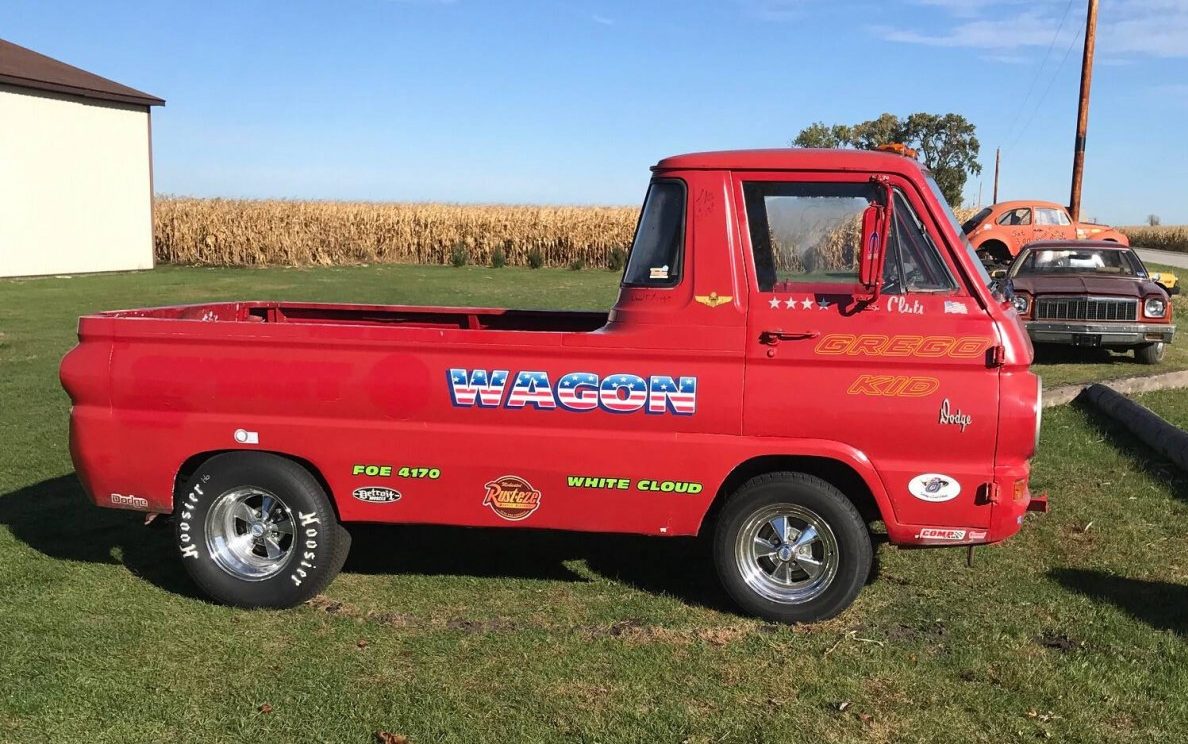 Fans of the wheel-standing Little Red Wagon or any super-crazy in-your-face classic will appreciate this similarly-engineered and equally insane pickup. The 1965 Dodge A100 pickup in Valparaiso, Indiana is ready to blast out of the cornfield and into your garage. Seeking a new owner here on Hemmings, the bright red pickup not only cosmetically resembles the Little Red Wagon, but the 426 Street Wedge V8 mounted in the bed runs “very strong,” according to the seller. If you’re bored of your current fleet, a mere $12,000 will spice things up with this red hot pepper of a truck.