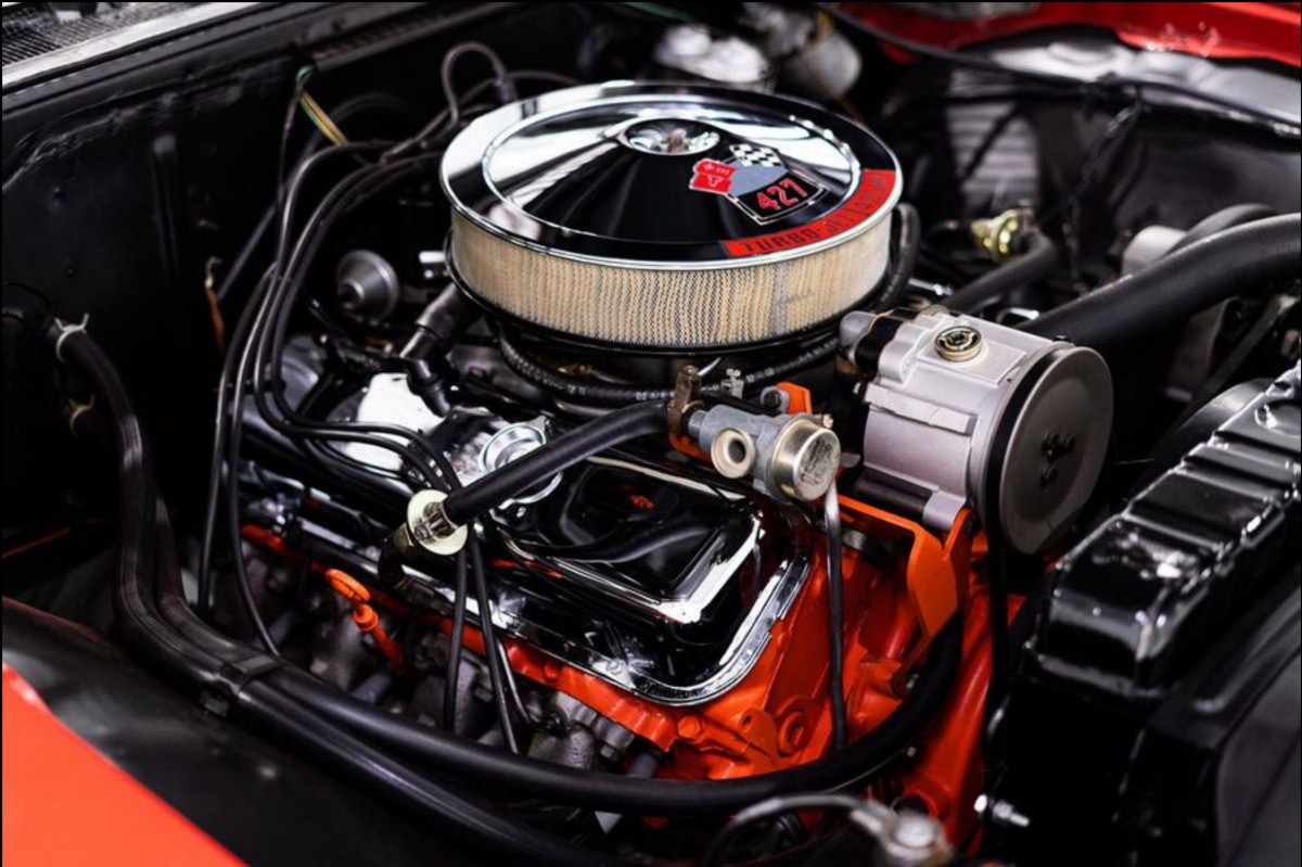 The Impala wears its original shade of Matador Red, although the owner treated it to a comprehensive restoration. He has used it sparingly since, so it’s no surprise to discover that it presents in as-new condition. The paint appears flawless, with no evidence of any imperfections. Even the chip-prone section between the grille and hood is perfect, and the overall impression is that this Impala has just rolled off a showroom floor. The restorer laid this paint over panels that are laser straight. There are no dings or bruises and absolutely no evidence of rust. The trim and chrome appear to be perfect, with the steel wheels and original dog dish hubcaps adding further to the understated exterior. The glass is as immaculate as the rest of the exterior. The only visual clue that potential buyers receive that indicates that this is anything other than a garden-variety Sport Coupe is the discrete “427” badges on the front fenders.