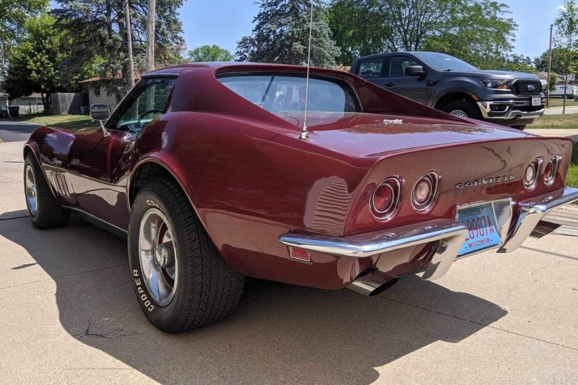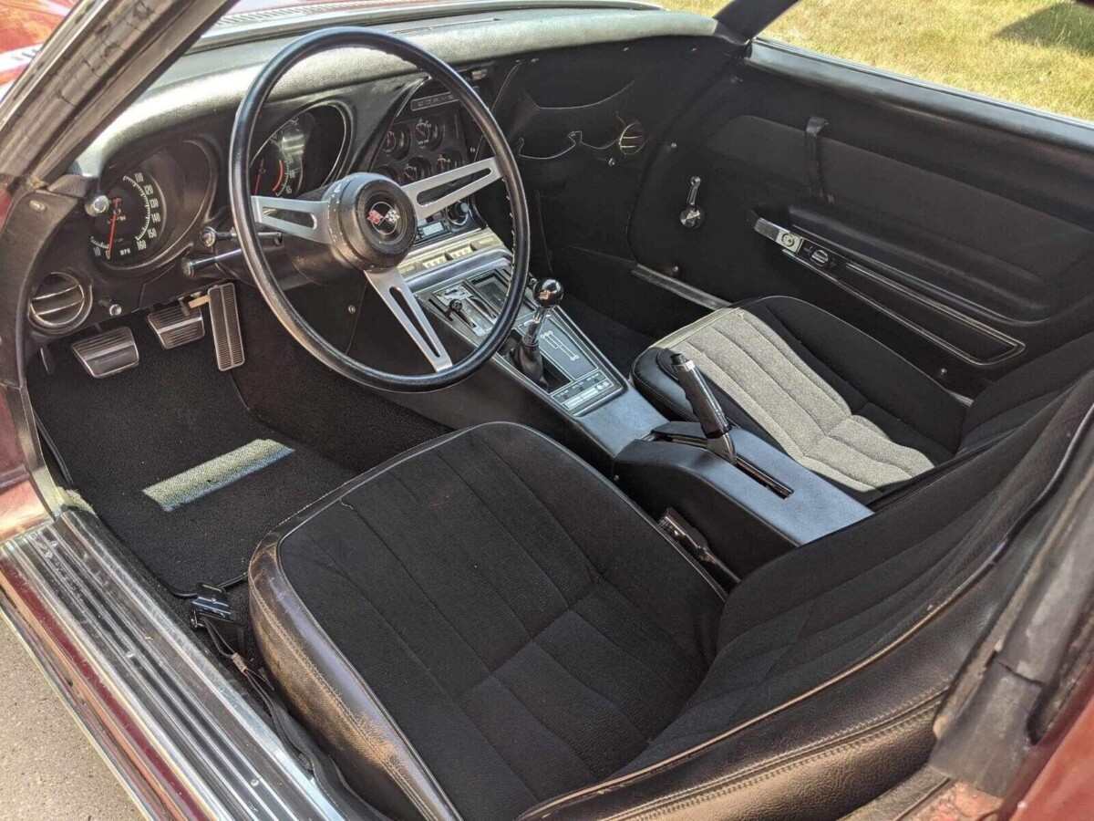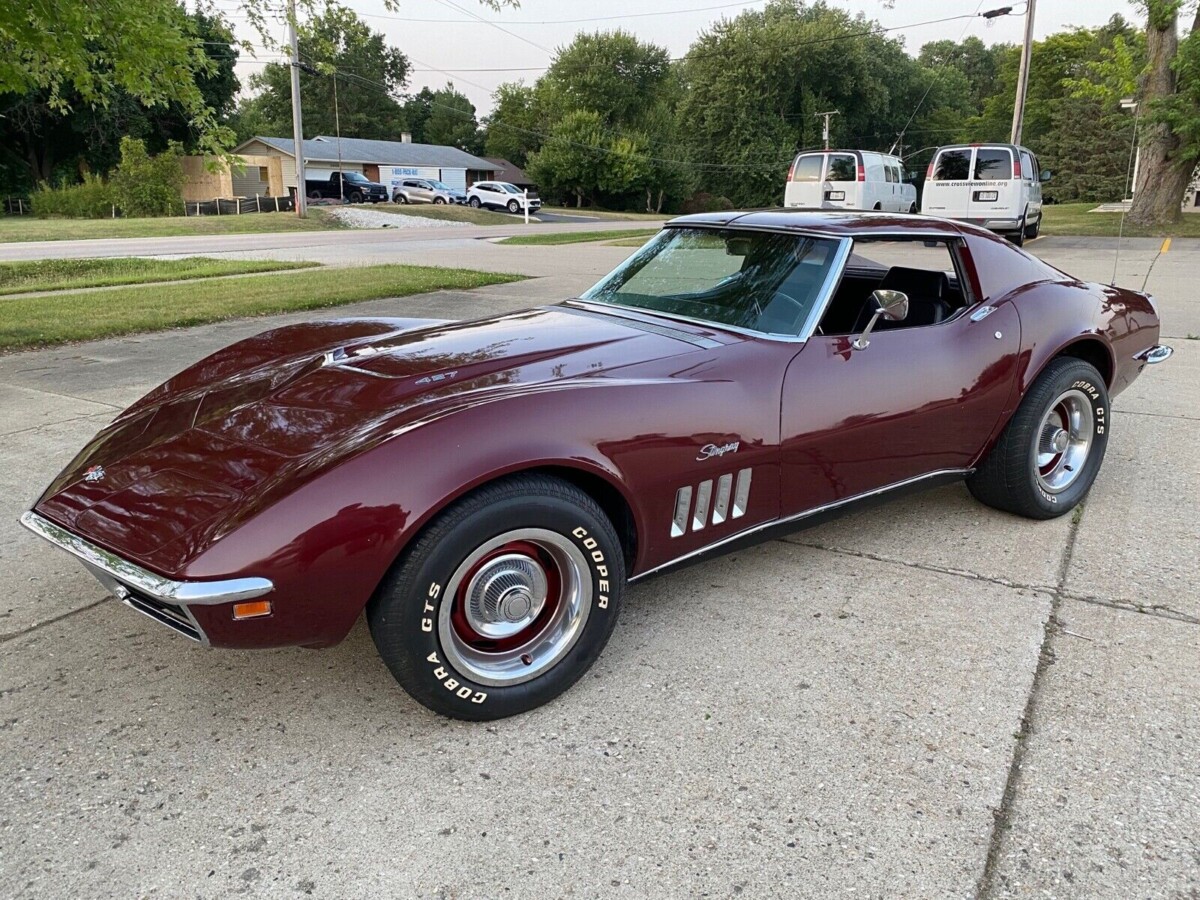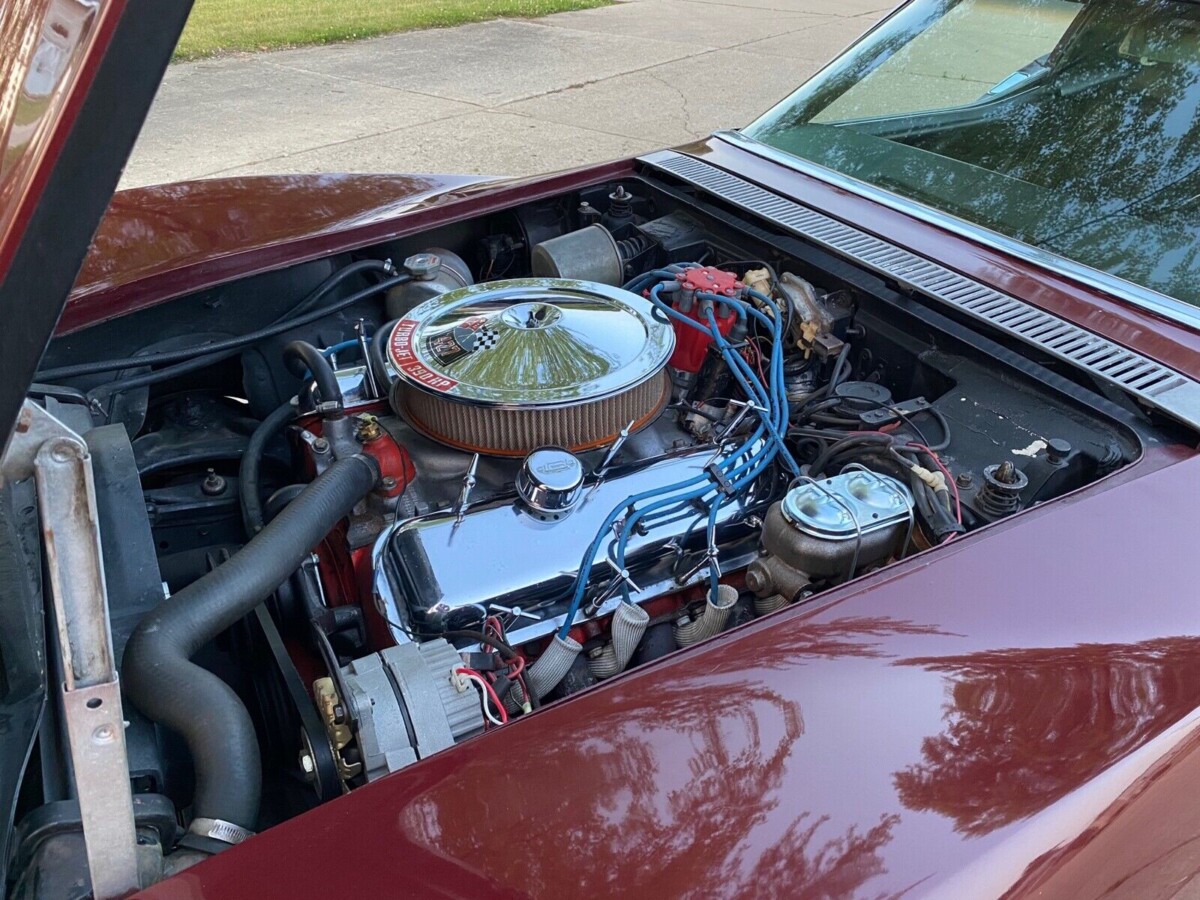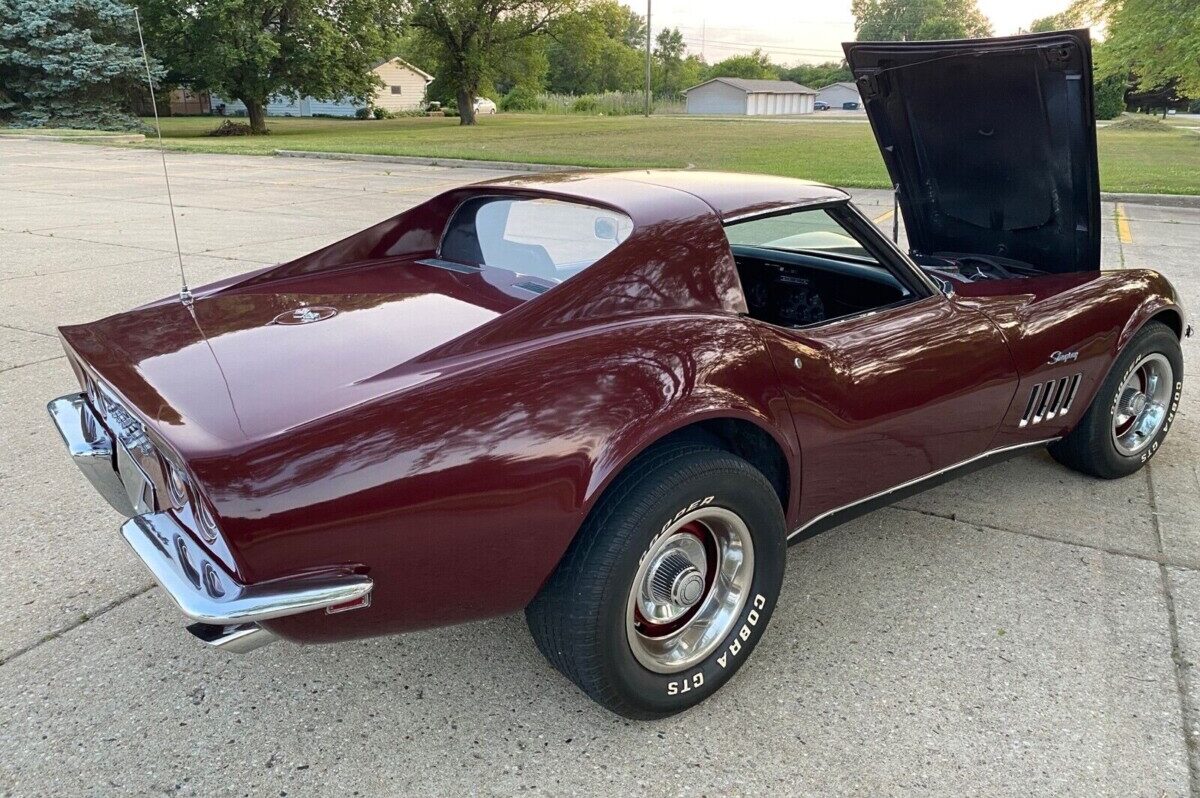Chevrolet followed a practice in 1969 that was seen in many other years, offering potential buyers a choice of ten paint colors to grace the panels of their Corvette. This car’s original owner selected Code 988 Burgundy, and the seller confirms it underwent a repaint in its original shade in the 1990s. The Burgundy shines like a mirror, with its impact heightened by the larger color-coded Rally wheels with sparkling trim rings and center caps. A close inspection will reveal a few chips, but none detract from its overall appearance. There are no fiberglass cracks, and the underside shots show nothing beyond light surface corrosion. The frame and birdcage are solid, meaning this Corvette is structurally sound. The trim and chrome are acceptable for a high-end driver, and there are no glass issues.