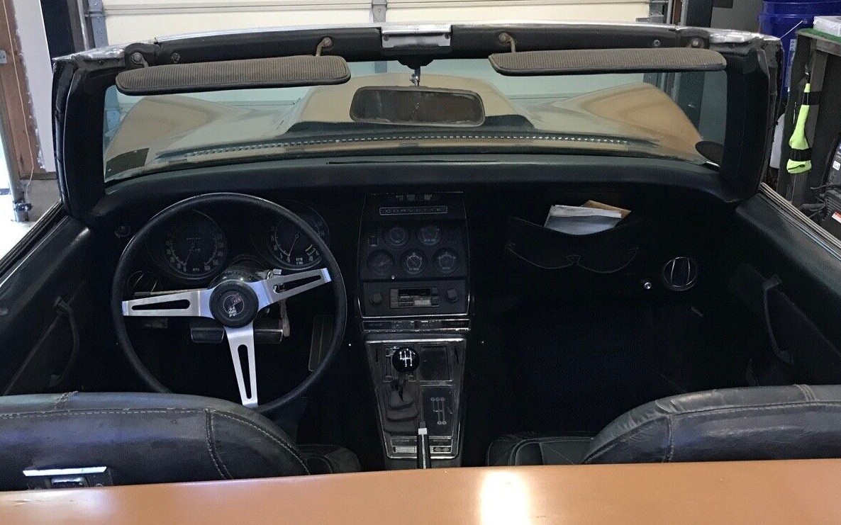 The exterior also seems to not be missing much, although the paint is showing some cracks along with a few on the body. However, the good news is the seller appears realistic and straightforward in his realization that the Corvette needs a complete restoration. A new convertible top and correct outside mirrors are also included in the sale, so that’s a plus. We don’t get to see any photos from the underside, but the seller claims the frame is in great shape and original.