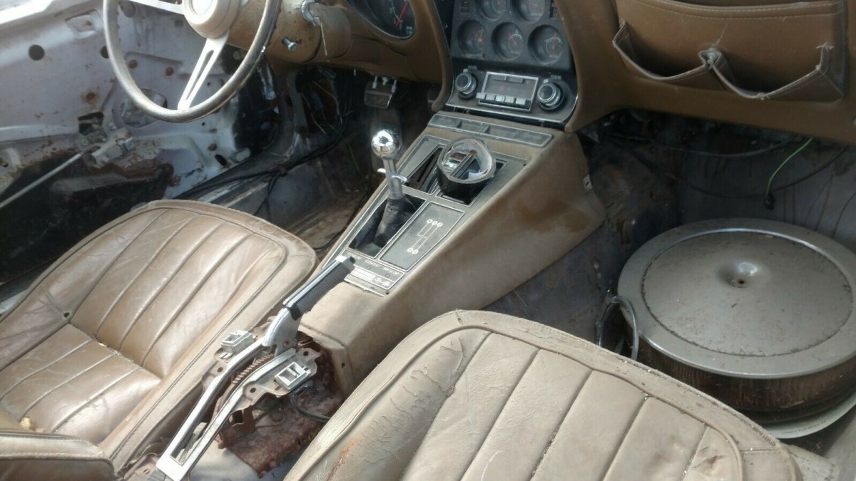 I love these old-school license plate frames, which likely offer a glimpse into the previous owner’s antics on the street and elsewhere. The Corvette has lots of period cool just oozing off of it, and considering the options list also includes air conditioning, tilt wheel, and power features, this was one loaded-up example when it was new. It will take a fair amount of work to bring this ’69 model back to OEM condition, but if it there’s no rust underneath and the numbers-matching engine can be made to live again, it seems like there’s all kinds of potential to own a very desirable muscle car when it’s done.