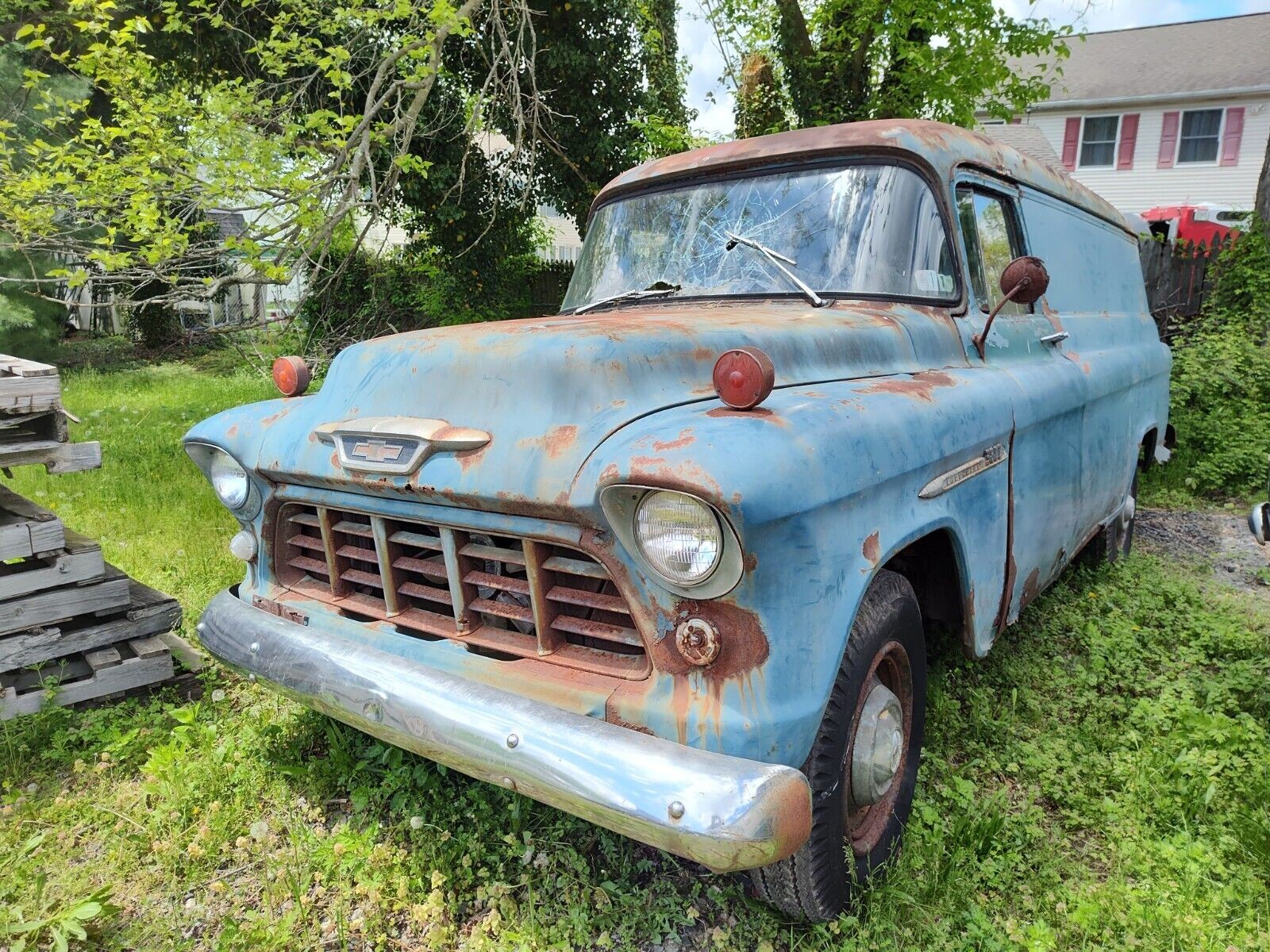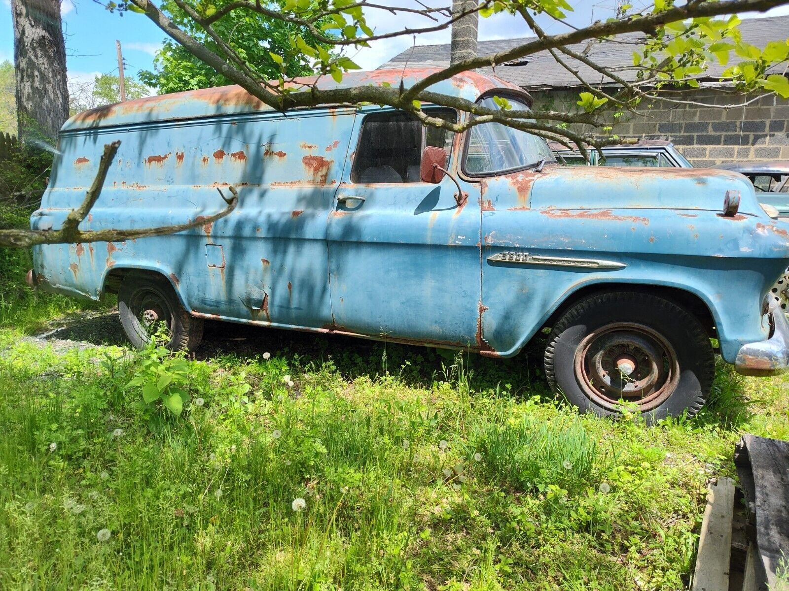 Many moons ago, I had the chance to buy a panel truck just like this. Someone I knew, their dad had a mobile welding business, and in the back was this MOMBO welder, for battleships, and such. At the time, I wasn’t into trucks, and passed on it. Panel trucks are still cool, if you can find one, that is. They generally led a rough life. Not sure that even is a 427, and if so, if the inside is anything like the outside, looks rough,,,besides, ’55 was the 1st “Task Force” series and the all new 265 V8 was the star, and that’s what should be here, not a 427 for cryin’ out loud. Great find.
