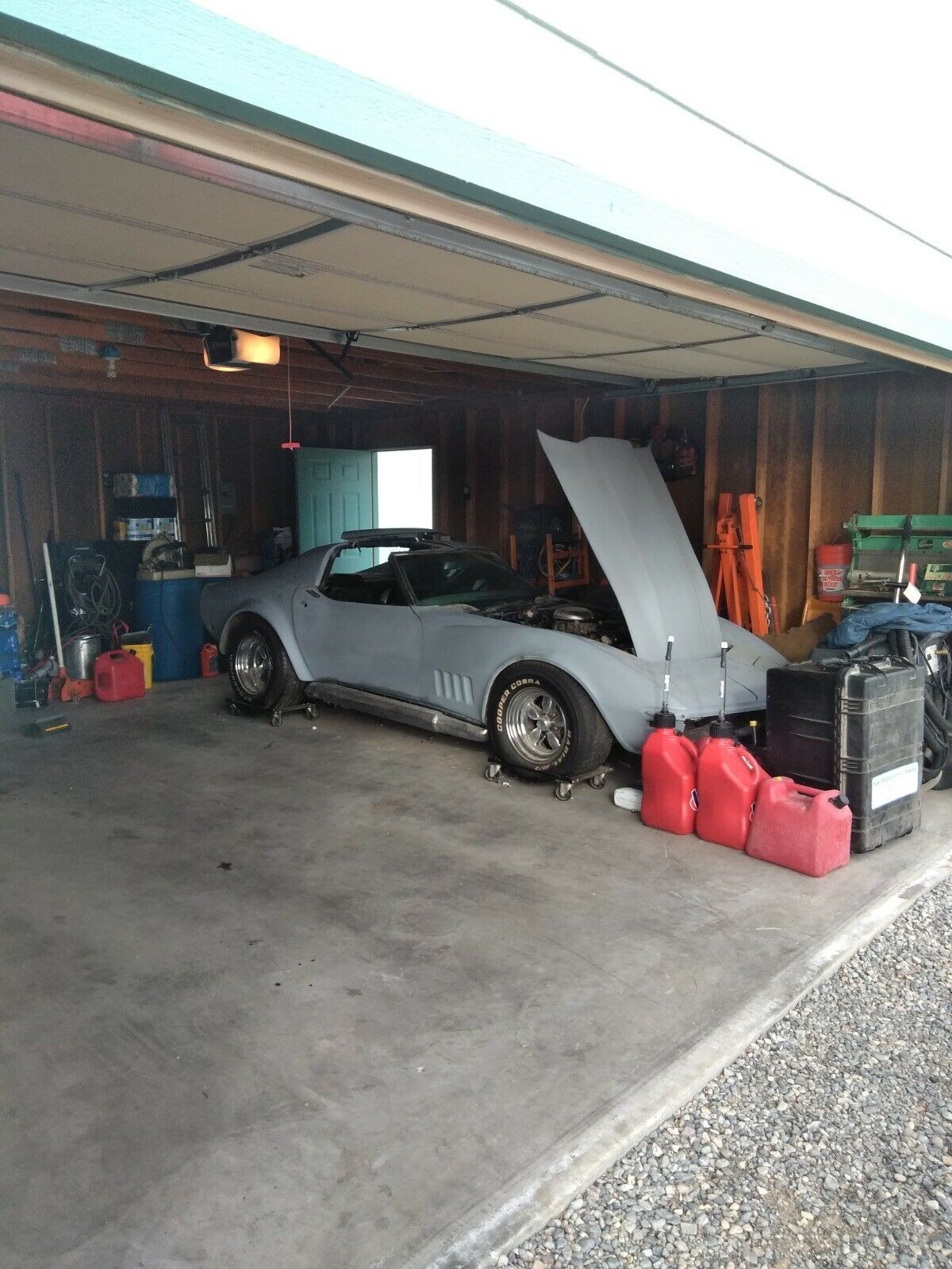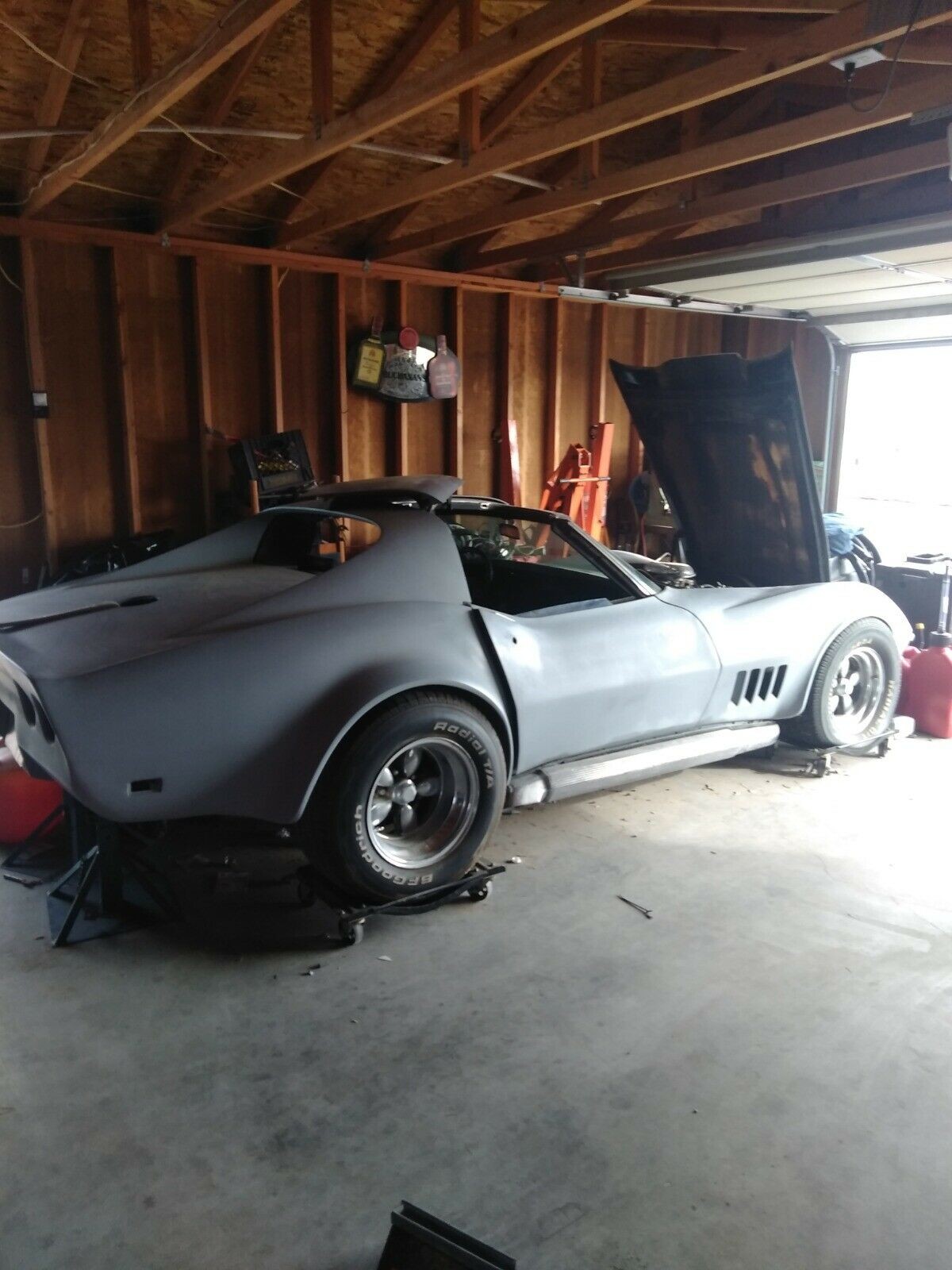 Currently in primer, it appears that all of the body work has been completed up to this point with the exception of the hood. I would assume (and hope!) that the seller has the trim, lights, and bumpers for the car. It is unclear what color the car was originally, but its looking like this could be a paint job, and some tinkering away from being a driver. Corvettes are well appreciated machines and there are plenty of parts, reproduction and original, out there to finish this fine machine. Would you roll the dice on this 427 powered garage find?