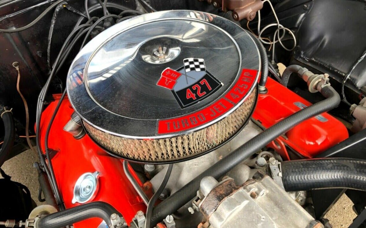 Always Google the VIN. If you do, you will find multiple ads for this car dating back to 2010, when the car was being sold as a roller, without engine or transmission. Later on there are several ads which list the engine size as a 454. Now, it is miraculously listed as a “matching numbers” aluminum head 427.