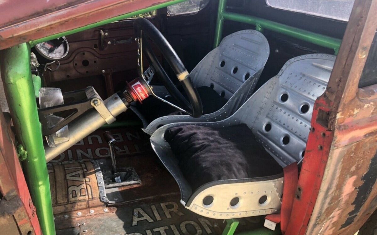 The interior features a nice pair of bomber-style seats. There are certainly no creature comforts, but with a hot rod like this, you don’t need much. The dash looks functional with a quick-release steering wheel, a big tachometer, and a couple of other gauges.