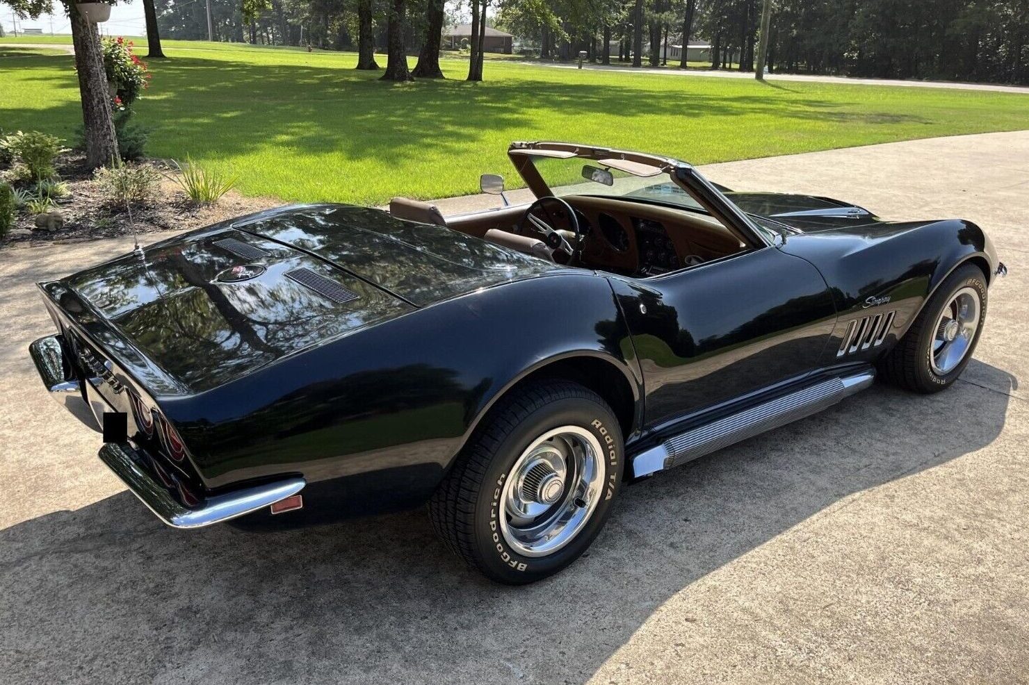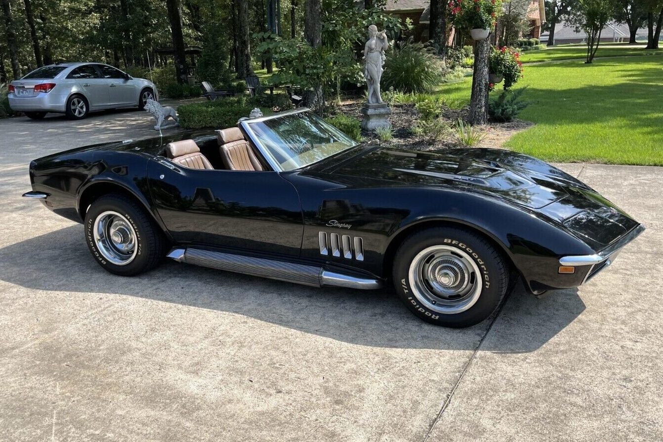 Chevrolet offered Corvette buyers the choice of ten paint shades in 1969, with this classic’s original owner selecting Tuxedo Black. It gives the car a menacing appearance, emphasizing the aggressive styling that was a hallmark of the early C3 models. The Corvette lost its edge when the chrome bumpers were replaced in later years, making the desirability of these earlier cars understandable. The paint isn’t perfect because swirls are visible from some angles. However, careful polishing should reduce the impact, lifting this stunning car’s presentation even higher. There are no fiberglass issues, and the single underside shot reveals everything as spotlessly clean and rust-free. The ‘Vette features a Black soft-top and a matching optional factory hardtop, although the condition of both is unclear. The trim and wheels look excellent, but the factory side exhaust hints that there might be more to this ‘Vette than meets the eye.