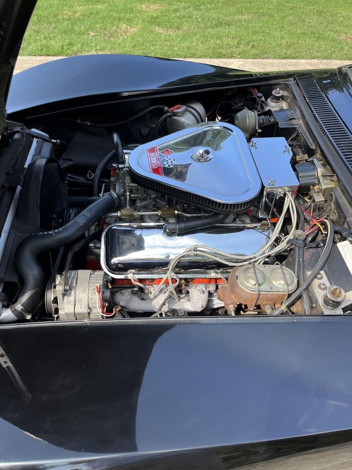 I had a RPO 69 4 speed convertible with a hard top, Fathom Green with saddle interior. I bought it from the original owner Santa Barbara, CA , and brought it back East to So. Florida. I couldn’t handle the humidity and heat. It took me awhile but I found 69 vette air conditioner parts including an AC wiring harness and the Max air door which is only accessible by removing the top surround. The rivets start to show just in front of the hood on the top surround. The 68 is worse, so I changed the top surround. I was going to write an article for Vette Magazine but the further I got into it I wouldn’t wish this on anybody. It’s a nightmare, don’t do it! The purpose in telling you all this is that during my endeavors on finding parts I ran into a guy in Boyton Beach, FL who was putting Tri-powers on a 67 and a 69 (L-89). They looked great but they were fakes. It is common knowledge that between 67-69 Corvettes, there are more Tri-Powers than were ever made. I saw it first hand!