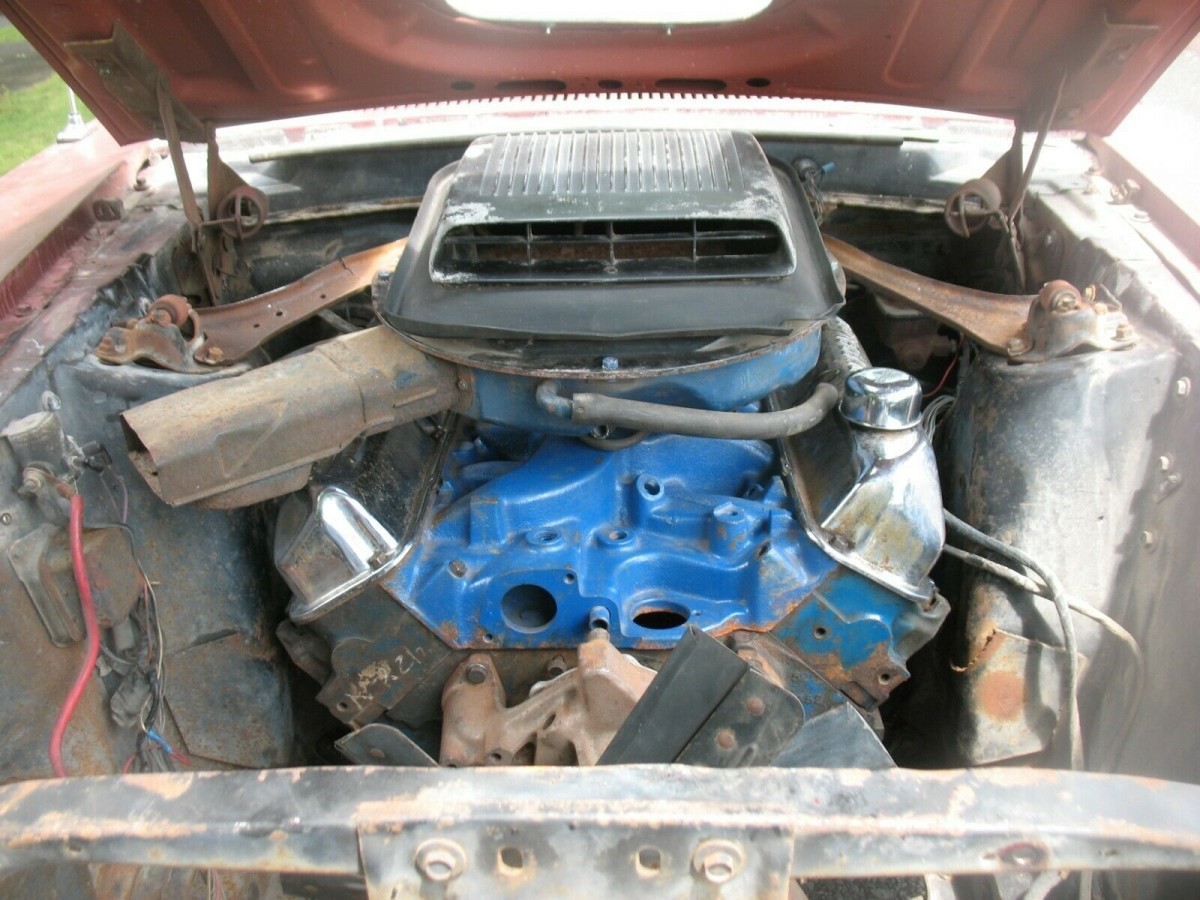 It’s a shame that the numbers-matching engine is long gone, but it’s also not surprising for old muscle cars to lose their desirable, high-performance mills once they become cheap, used cars. Kudos to the seller for finding a correct, date-coded engine along with numerous other components. The seller lists the following parts are included with the replacement engine: the 8M6 Cobra Jet C-Scratch block; an 8M1 correct water pump; an 8M6 correct Cobra Jet intake; and correct Cobra Jet heads dated 8M17 and 8M18. The four-speed transmission is also the correct Cobra Jet RUG-AE2 unit. It doesn’t look like the engine is has been fully fitted to the Mustang, and the listing also doesn’t specify whether the Mustang even runs at the moment.