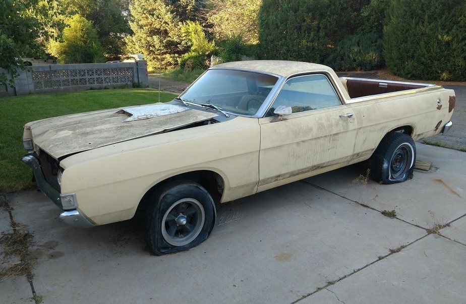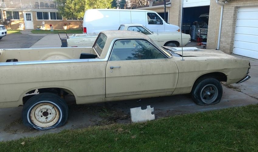 Ranchero production was soft in 1969 compared to other years. Ford built 18,800 of them that year. Since we don’t see evidence that this pair is either the 500 or GT, we’ll assume they were both standard Rancheros, making them two out of 5,200 units. The focus of the seller’s posting is the one 1969 Ranchero that the seller says was an R-Code from the factory. However, the original engine is long gone, having been replaced by another 428 from a 1969 Mustang Mach 1. However, it’s been broken down (apparently for a rebuild) and it will leave with the buyer in boxes. It’s mated to a heavy-duty C6 automatic transmission. Both vehicles are rollers if you can get the tires to hold air. For a breakdown on Ranchero production, you can go to the Ranchero forum.