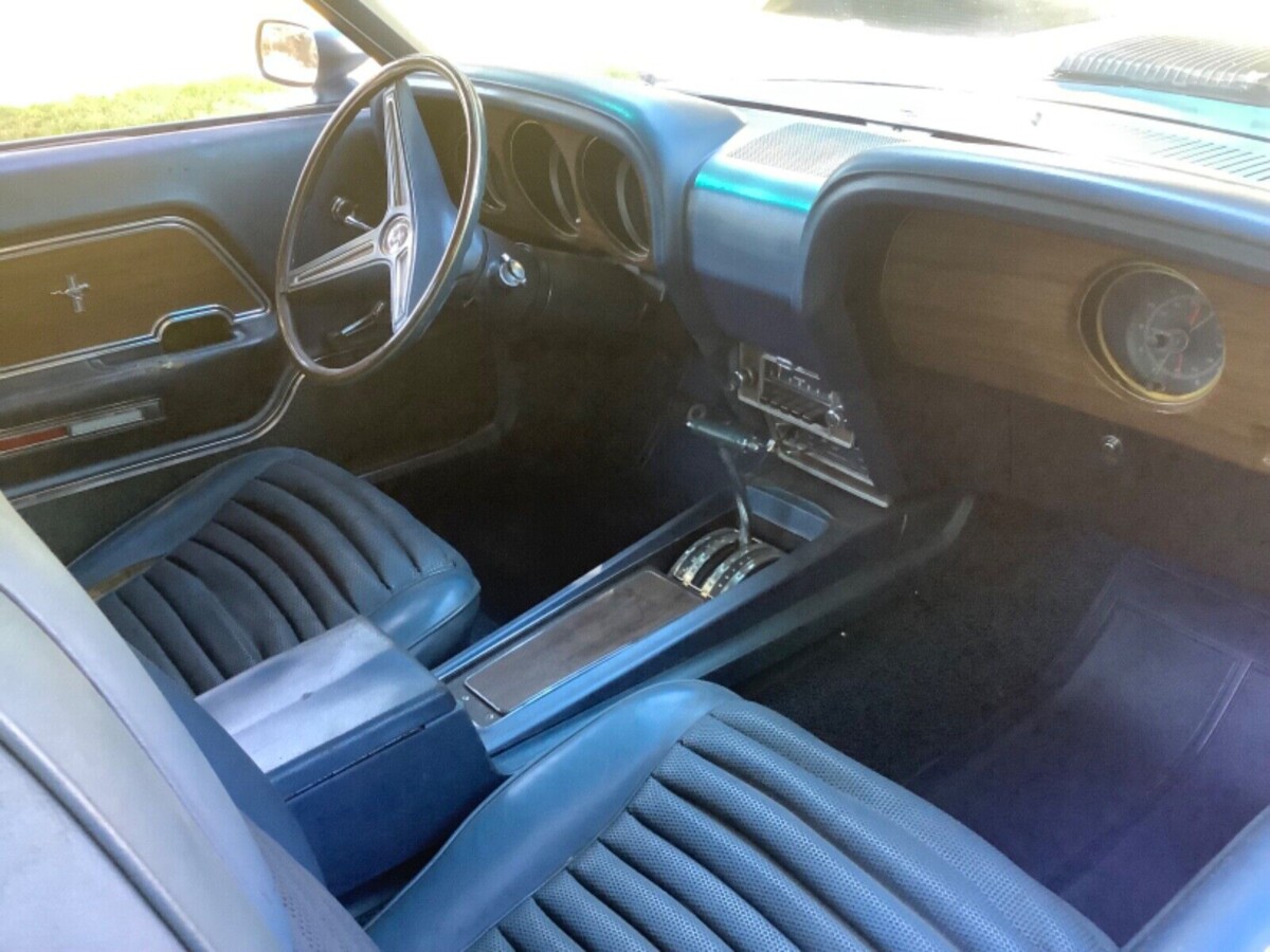 The supplied Marti Report and original Window Sticker paint a picture of a Mach 1 where the original owner craved outright performance. They equipped this classic with a 428 Cobra Jet Ram Air V8, a three-speed C6 transmission, a 3.50 rear end, power steering, and power front disc brakes. That combination delivered 335hp and 440 ft/lbs of torque, allowing this beast to storm the ΒΌ-mile in 14.6 seconds. I would love to reveal this Mustang is numbers-matching, but the original drivetrain is long gone. However, the seller did their best to help this classic regain its lost youth by sourcing a genuine 428 Cobra Jet motor that was complete from the correct carburetor to the right oil pan. They took the same approach with the transmission, tailshaft, and 9″ rear end. The Cobra Jet received a rebuild that included new forged flat-top pistons, and the car runs and drives well. They supply an embedded video clip within their listing, allowing us to hear that sweet V8 running. It sounds perfect breathing through its new dual exhaust, with no smoke, rattles, or other odd noises. There is a small transmission fluid leak around one seal, but it appears this vehicle has no further mechanical needs. They completed this aspect of the build by detailing the engine and its surrounds to a high level that will draw favorable comments whenever the new owner lifts the hood.