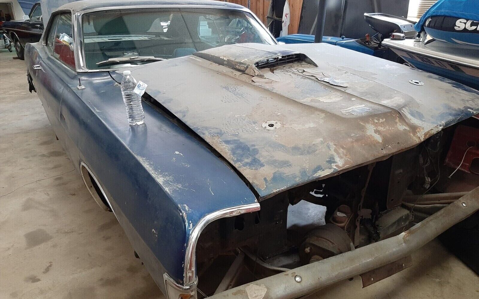 So, the 335 gross HP, 428 CI V8 engine is out of the car and in pieces. The seller claims, “Engine block is VIN stamped to match title and inner fender stamp“. Added is a statement about the carburetor which is not believed to be original to this car. Whether it’s all here or not is unknown though the seller makes mention of, “How much is a complete unbored original 428 block? Rods? Crank? How much are heads? Intake? Carb? Air Cleaner? Exhaust headers? Smog? Bell housing? 4 speed? Yoke? Shifter? Complete N case? Rear end and axles?” which alludes to all of those components being included. This is a four-speed manual transmission car, complete with a nine-inch, 3.50:1, Traction-Lok differential.
