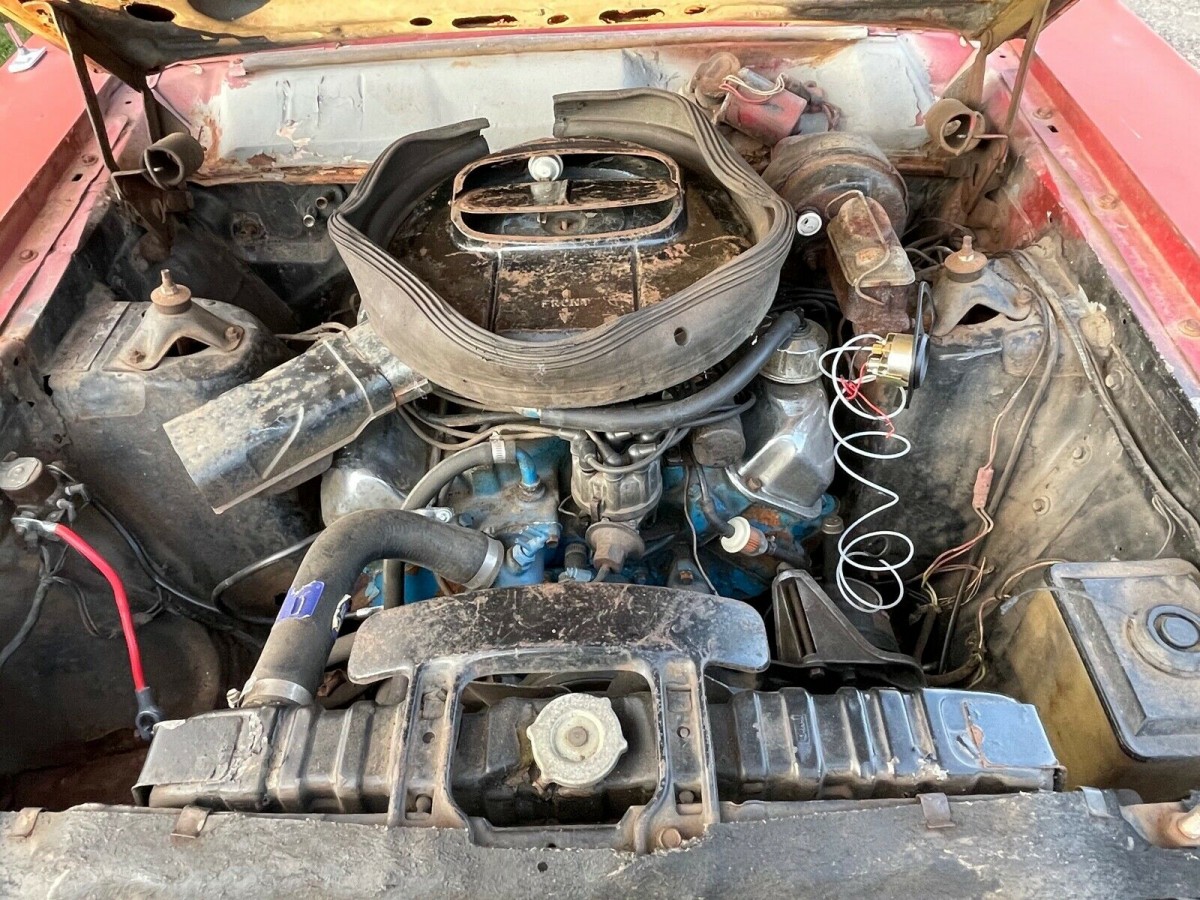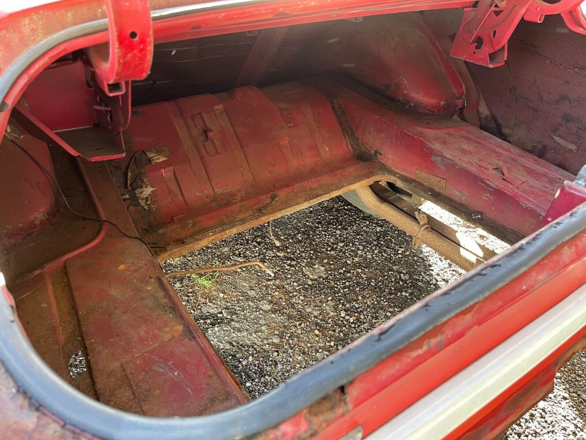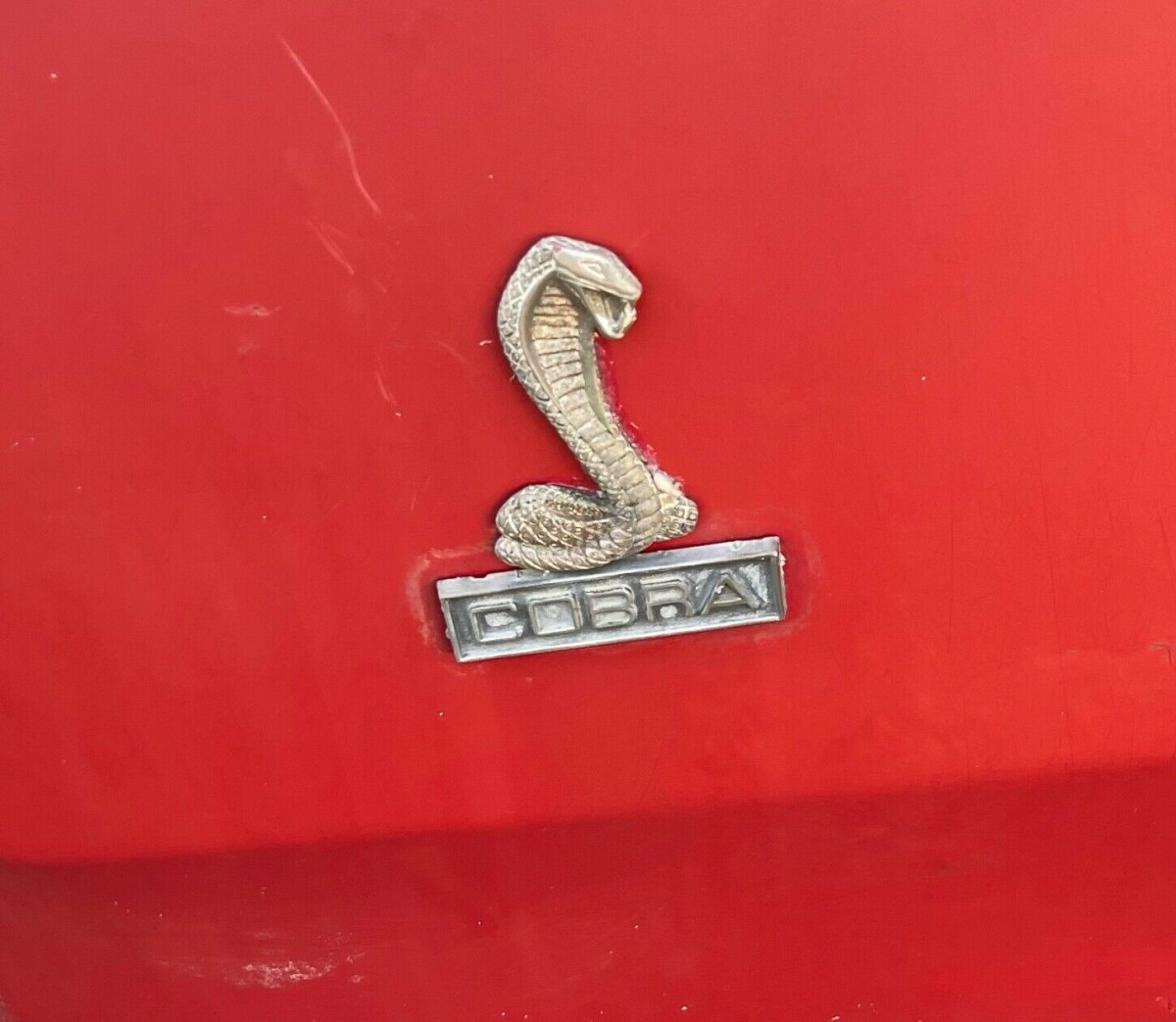 Digging further into the condition of the car’s body, the Ford is going to need a new right front floor pan while the driver’s side might settle for a patch. The floorboards in the rear seat area are still good. You’ll find more crusty stuff under the hood and the bumpers are gone, but the bumper brackets are included. One of the door’s window glass is also missing. The Cobra left the factory with Candyapple Red paint and the seller is providing a Marti Report that will document the car’s roots.