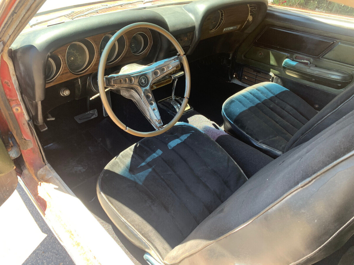 I see a lot of discrepancies in this car!!! A- I’ve never seen a Mach 1 with the MUSTANG letters on the back of the spoiler, they always had the striping package. B- I’ve never seen a Mach 1 with a “flat hood”, they always had the Cobra Style Hood Scoop. C- I’ve never seen a Mach 1 that didn’t have the “Wood Inserts” in the door panels! Not to mention the Console is missing! A lot of questions about this car! I would need to see the Marti Report! And those wheels look terrible on this car!!! Needs a set of Magnum 500’s!!!!