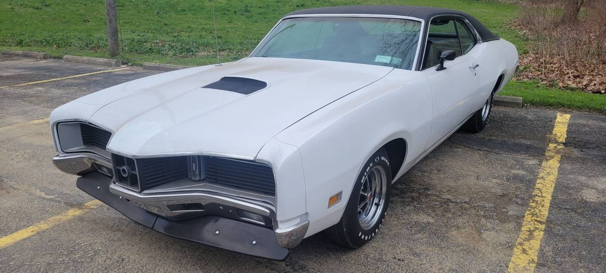More likely a 1970. Front gunsight center is smaller than 1971, which had GT (G above T) in it. Parking light lenses were amber (these are clear). Missing chrome Mercury script on left corner of hood and right corner of trunk lid. Missing chrome trim that was on lower body line, front to rear and over wheel openings, which separated lower black chip guard paint, (unless it was ordered deleted & would be noted on window sticker). Possible repaint? Front & rear spoilers were only standard on Cyclone Spoiler models. Rim Blow Steering Wheels did have cracking problems. Mine was in same spot, but still functioned.
