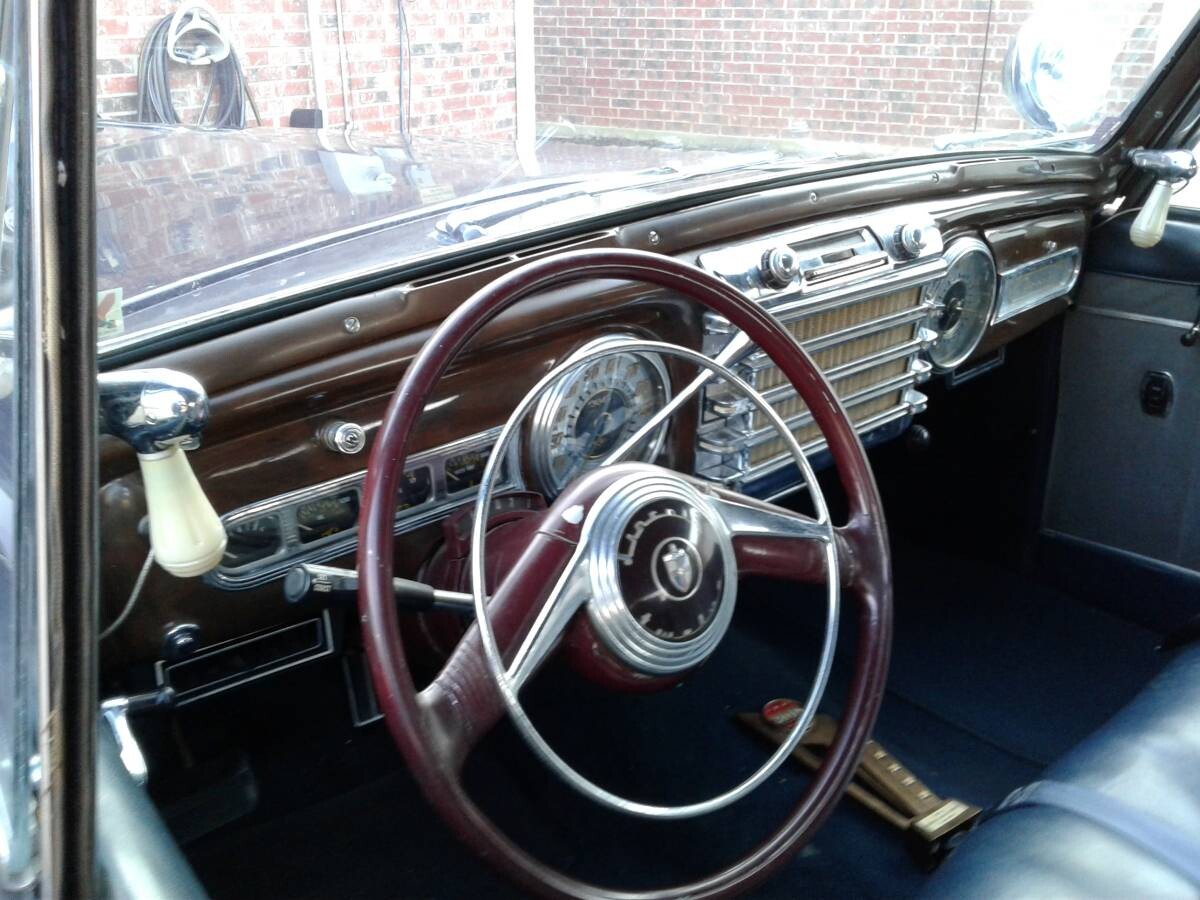 The seller supplies a single interior shot, making it hard to determine its overall condition. It appears the seats wear Dark Blue leather, with the door trims in a lighter shade. The dash is a masterpiece of Art Deco design, and the carpet looks spotless. It seems like the factory radio and clock are intact, but someone added the comfort of air conditioning and power windows. It would take an in-person inspection to confirm the interior state, but first impressions are positive.