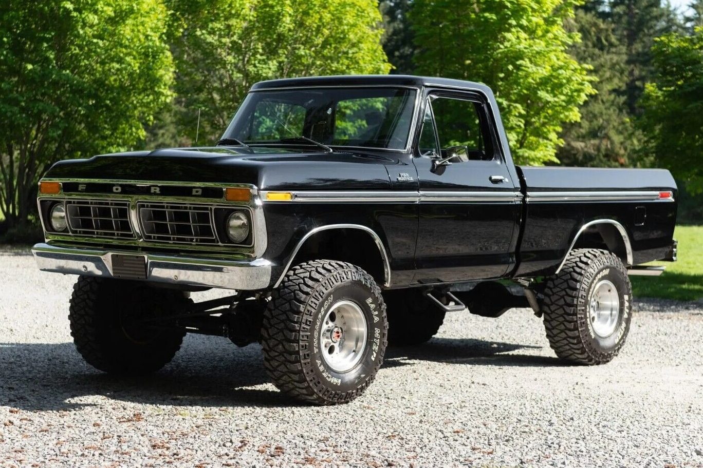 Ford launched its Sixth Generation F-Series in December 1972, with vehicles rolling out of showrooms until 1979. The new model rode on the same chassis as its predecessor. However, Ford emphasized rust prevention strategies more, meaning that more of these classics survived in a rock-solid state than any previous generations. This 1977 F-150 Custom makes a bold statement in Code 1C Black. The seller doesn’t mention prior restoration work, but the lack of visible flaws and defects suggests it has received at least a cosmetic refresh. The paint shines impressively, perfectly contrasted by bright trim that is spotless. The bed features a sprayed liner, but the lack of dings and dents in its steel suggests the vehicle hasn’t been abused. About the only thing cleaner than this Ford’s exterior is its underside. The included images reveal a consistent layer of undercoat on the floors and frame, with no rust problems. The glass is crystal clear, and the aftermarket wheels wrapped in Mickey Thompson tires hint at the beast lurking below this classic’s skin.