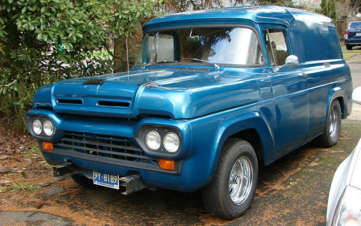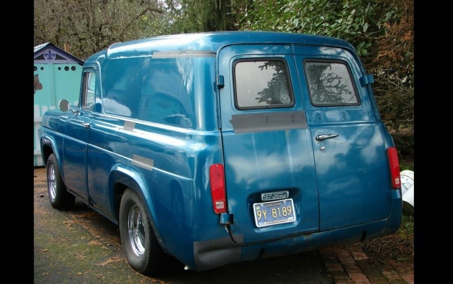 Going far beyond dropping a big V8 and transmission into a classic vehicle, this 1957 Ford F-100 Panel truck in Portland, Oregon follows through with modern air conditioning, power front disc brakes, Toyota power steering, and more. With most of its engineering complete, this strong runner seeks a new owner here on eBay. The $12,750 Buy It Now price leaves plenty of budget for finishing the cosmetic work and other shortcomings. Keen fans will notice the truck wears most of a 1960 front clip.