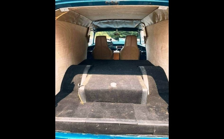 A custom fuel cell resides under the carpet. What looks like birch plywood keeps the cargo area from resembling a black hole. Eagle-eyed readers may notice the interior ceiling obscures the aftermarket sunroof, as noted in the listing. The new owner could go in various directions with this updated panel truck. Honestly it’s got enough high-performance parts to tweak it for drag racing, but with the Vintage Air, modern steering and brakes, it could become an SUV alternative. How would you build out this partially-modernized panel truck?