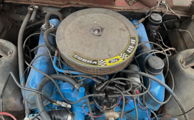 The door tag identifies this Ford as a real deal GTA that was painted red when it left the factory. Remnants of that color remain, but blue was applied some years later. What’s left of the interior is black, but the front seats are MIA. The original C6 automatic transmission was swapped out for a manual at some point, so it’s more of a GT now. The factory Ford 9-inch rear end is still in place. Instead of the 390, a 429 resides under the hood now, something the seller does not mention.