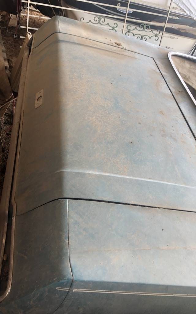 There are two images of the exterior and neither is very good. The seller admits, “It has not been adequately stored in the last few years. The interior has suffered from this, but the exterior, due to our Colorado climate, has not suffered except from lack of a wash, wax, and general TLC. No rust that I can see on a superficial check“. True that! It appears to have been stored, outside, with either the top-down or the top in shredded condition. We’ll have to take his word regarding body/structural condition, the images just aren’t revealing.