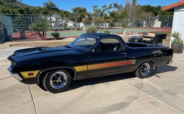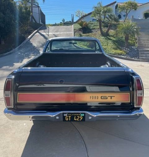 This is a numbers-matching truck and the 429 is paired with a C6 automatic transmission. We’re not told how well it runs, but it’s probably one of the faster pickups you’ll come across. You’ll pilot this vehicle in style as the black vinyl interior with bucket seats and a console looks most inviting. Extras on this Ranchero include hidden headlights, Magnum 500 wheels with raised white letter tires, and air conditioning (vintage?). If you were looking for a car/truck of this era, it might be hard to find one that seems any nicer than this one.