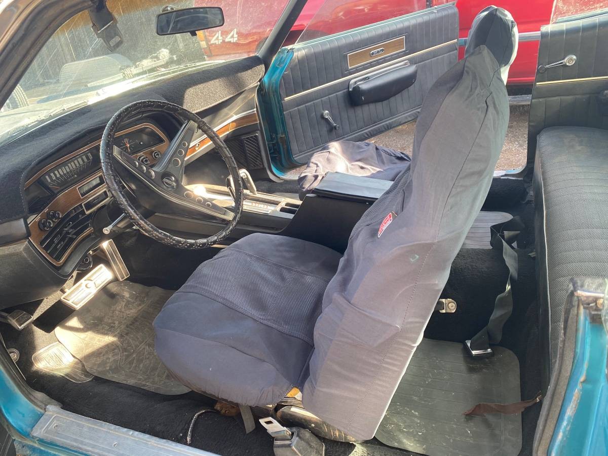 We can’t verify the 429 said to be under the hood as no photograph is provided. And the interior may be okay, but it’s hard to tell with the oversized aftermarket seat covers over the front bucket seats. But the back seat, dash pad, and carpeting all look to be fine. “Time capsule” may be an optimistic description of the car, but no glaring issues suggest that the next owner is going to have a lot of work to do — at least anytime soon.