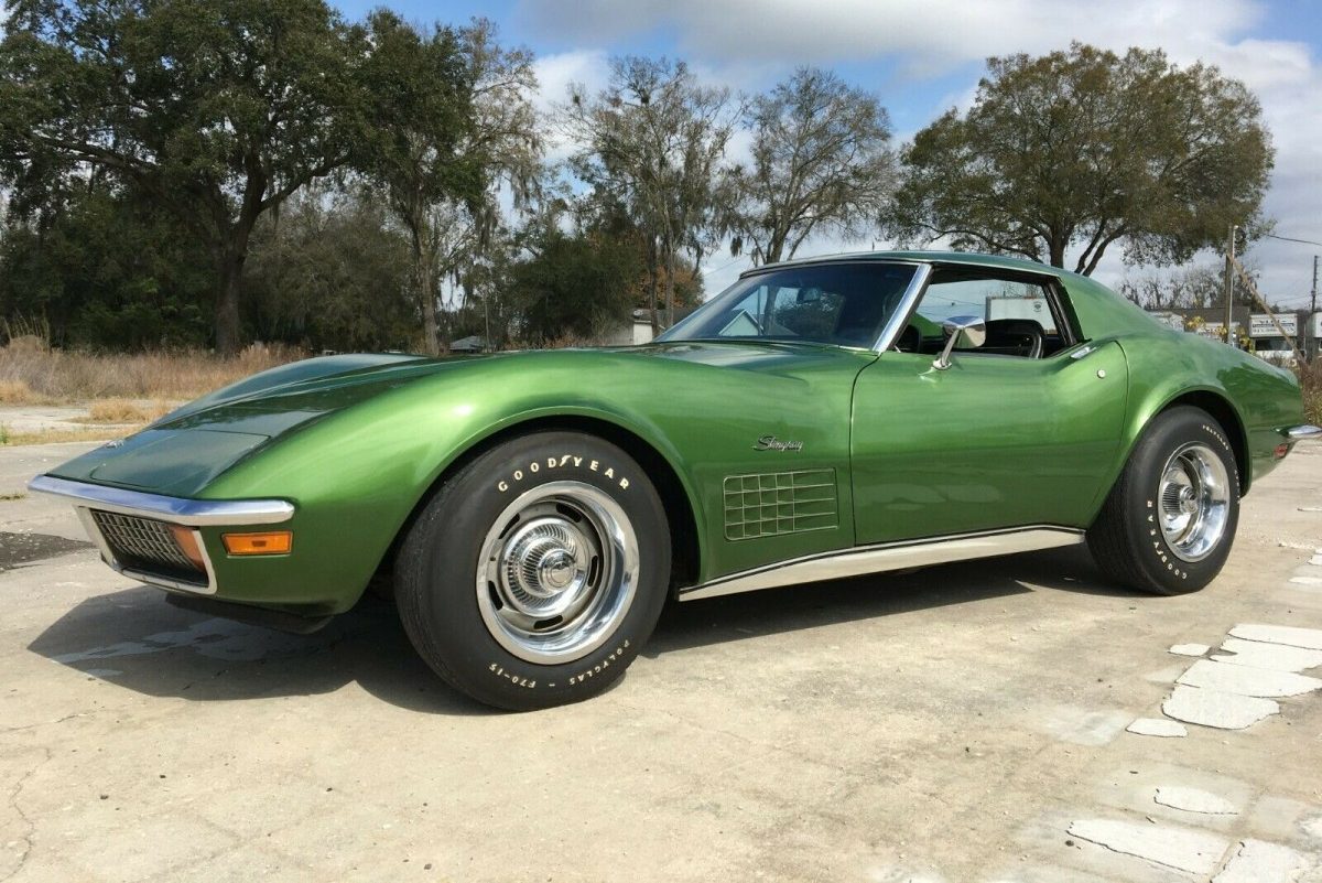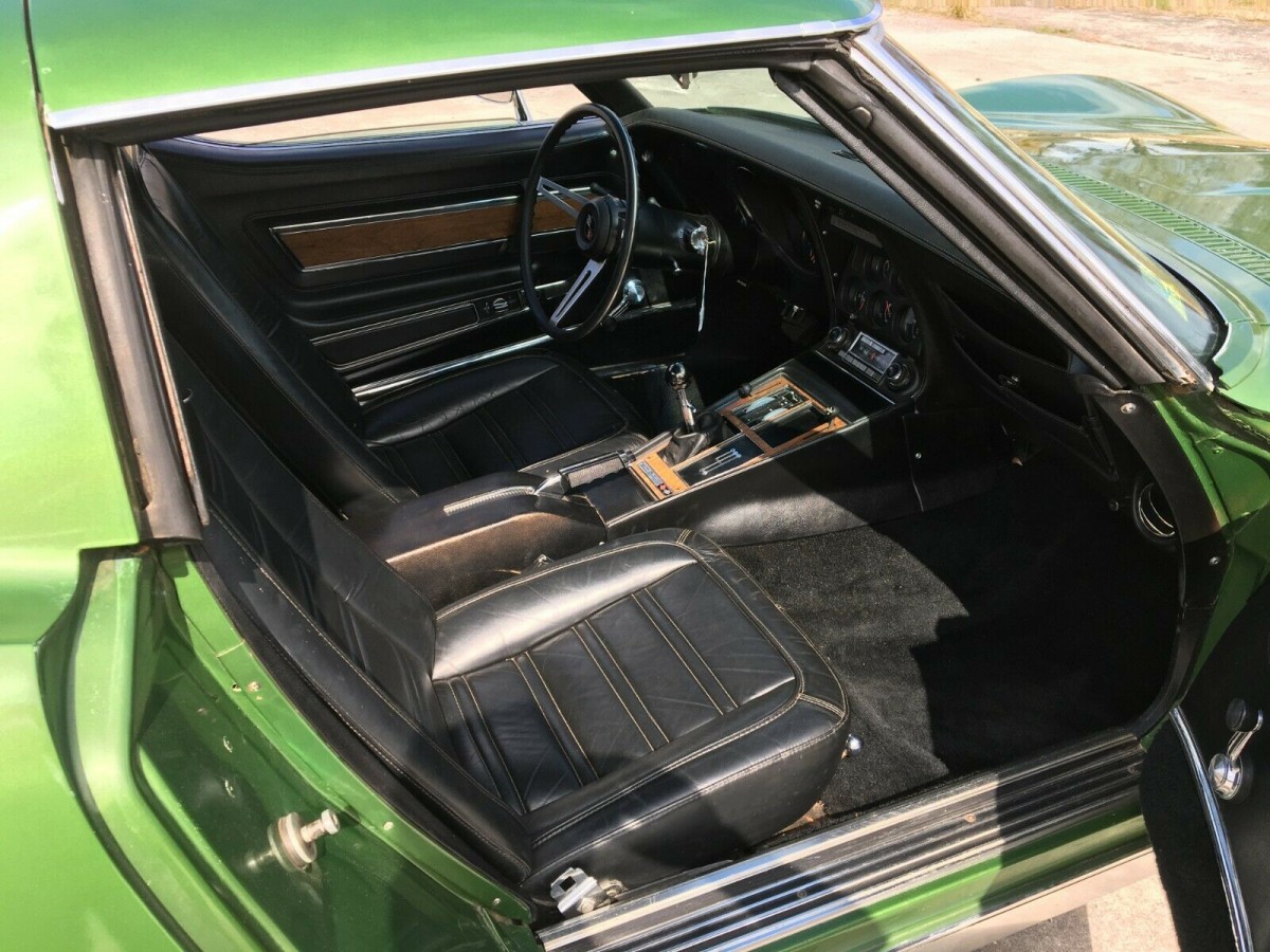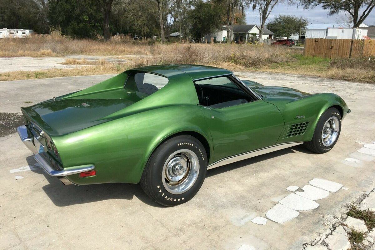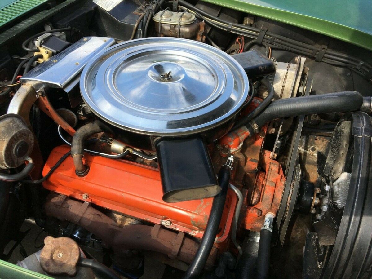 Reminds me of my ’72. Also Elkhart Green, but with Saddle interior, 454, AC, side pipes & power windows. I bought it after driving & falling for a friends 350 car. Mistake. That extra weight over the front wheels made a helluva difference in handling. Looked like a fish, went like a fish, steered like a pig. If I EVER have another C3, it’ll be an SBC car. The 350’s plenty. And I actually like the green. GLWTS.