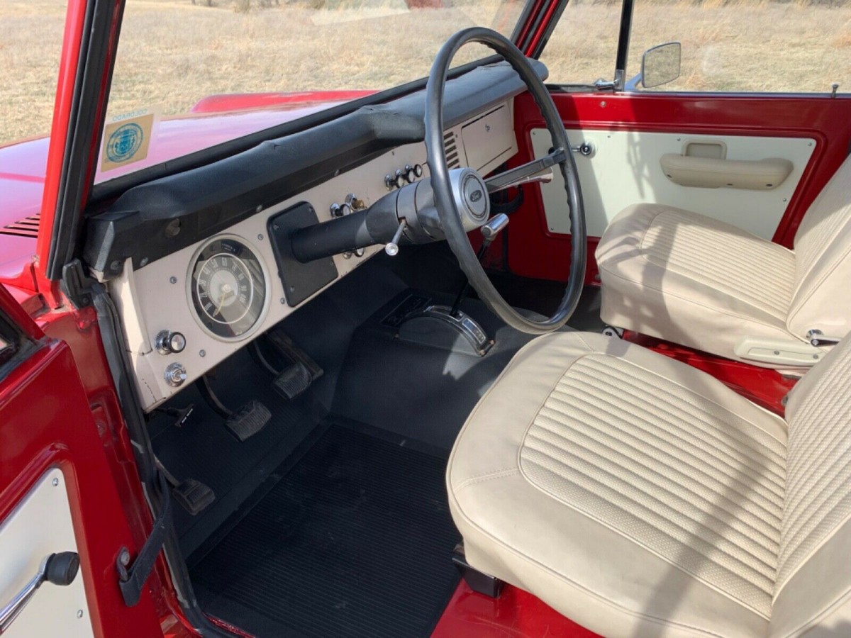 The 1971 model year was not a banner one for the Bronco, but it was far from the worst, with 19,784 buyers willingly handing over their cash to park one in their driveway. What few buyers knew at the time was that the Bronco had a significant flaw that would emerge in the coming years to cause sleepless nights. The Bronco is an off-roader that can give rust a bad name. The company’s anti-corrosion measures were less than brilliant, and it is common to see examples today with significant panel issues, dissolving floors, and front inner fenders looking like Swiss cheese. Our feature car has avoided most of these issues, partly due to spending most of its life in drier locations. The seller admits to repairing rust in the outer rockers and inner fenders, but there are a couple of small spots in the driver’s kick panel and the front passenger floor awaiting patching or repair. They also repainted the repaired areas, but most of this classic’s Candy Apple Red is as it left the factory. It is faded and patchy in a few spots, but the coverage and decent shine may prompt the buyer to leave the exterior largely untouched. It is common to see these classics with wheel arches cut to accommodate larger wheels and tires, but this Bronco hasn’t suffered that fate. The original wheels and hubcaps look excellent, the same is true of the trim, and the glass appears flawless.