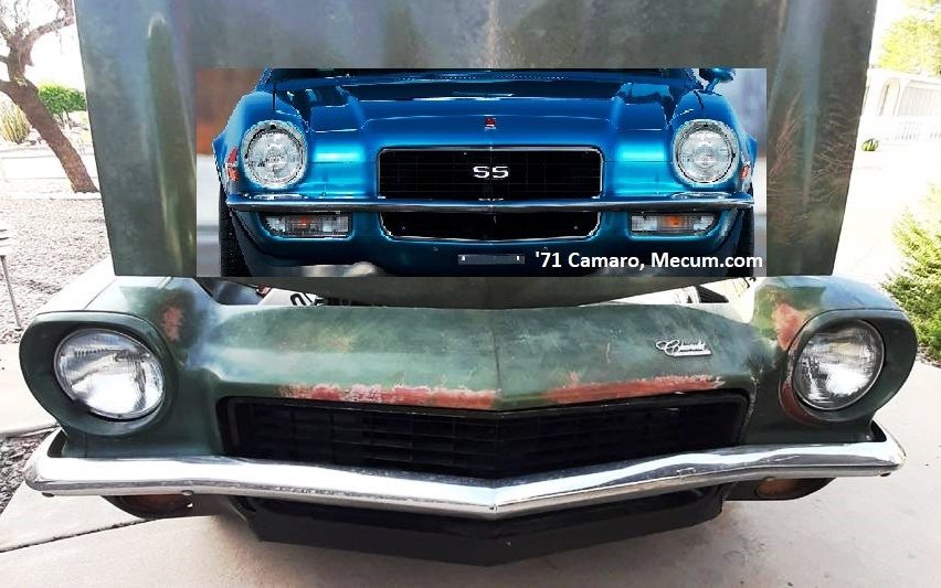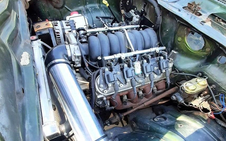 This overlay of a full-width-bumpered 1971 Chevrolet Camaro shows the family resemblance. From the front, anyway, the Vega is much like a mini-Camaro! Personally I’d have repurposed a wrecked Camaro LS and six-speed for a low-budget daily driver, but the mighty LS3 certainly packs a wallop for the “Go big or go home” crowd. You’ve easily got $7000 in parts here, bolted to what might be a $3000 car. Throw in $2000 for the labor, a serious bargain, and it would be hard to beat the bang-for-the-buck factor of this green machine. What would you change on this modern take on the V8 Vega?
