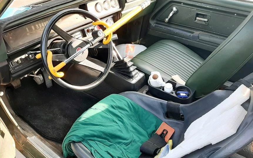 First impressions: A. Does someone live in the car? “Where are you staying? I’ve got a room at The Vega.” and B. No one puts a shifter like that in a Vega unless it’s got serious power. Car thieves from the ’80s and ’90s will certainly get a chuckle out of “The Club” anti-theft device. Purists, take heart! The original driver’s seat comes with the sale.