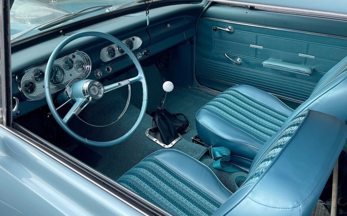 The seller says his Nova serves a dual purpose, as it’s a good choice for those who like to go to car shows on Saturday and then to the race track on Sunday. The Chevy spent a long time in an indoor garage in Utah with 67k miles on it before the current owner acquired the car in 2020, and there is said to be zero rust anywhere. The seller rates the turquoise paint job an 8.5 on a 10 scale and mentions one small chip on the edge of the driver’s side door that has been touched up. The car has bigs and littles, with 15″ x 10″ wheels on the rear and 15″ x 4″ up front, and the seller chose the plexiglass hood scoop because he was a fan of seeing them on some of Dick Harrell’s race cars in the sixties.