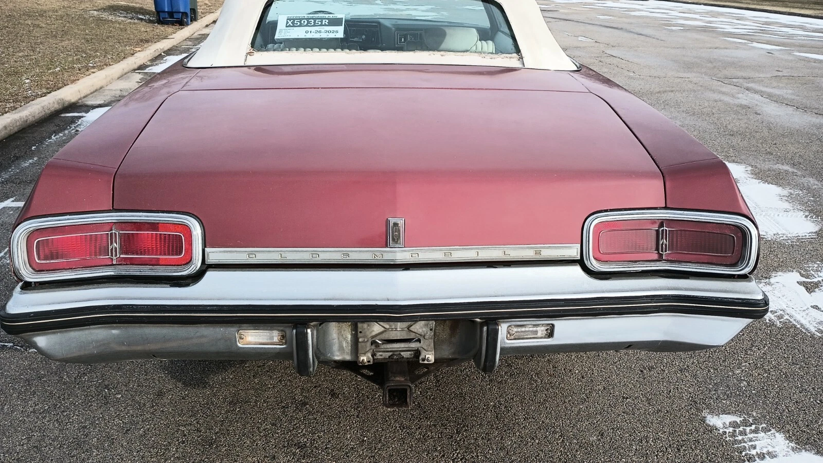The only history the seller provides here is that this Delta 88 was stored in a heated environment, which he says has preserved the body from becoming damaged. The panels are described as having no rot, and I’m not spotting any obvious corrosion anywhere on the exterior. It’s also believed that the paint is original, and I think the color is Cranberry Red, which looks good with the white top and interior. I’m not seeing much outside that would make me want to do anything besides preserving things how they are, other than perhaps removing the trailer bar and installing a new canvas top in the not-too-distant future.