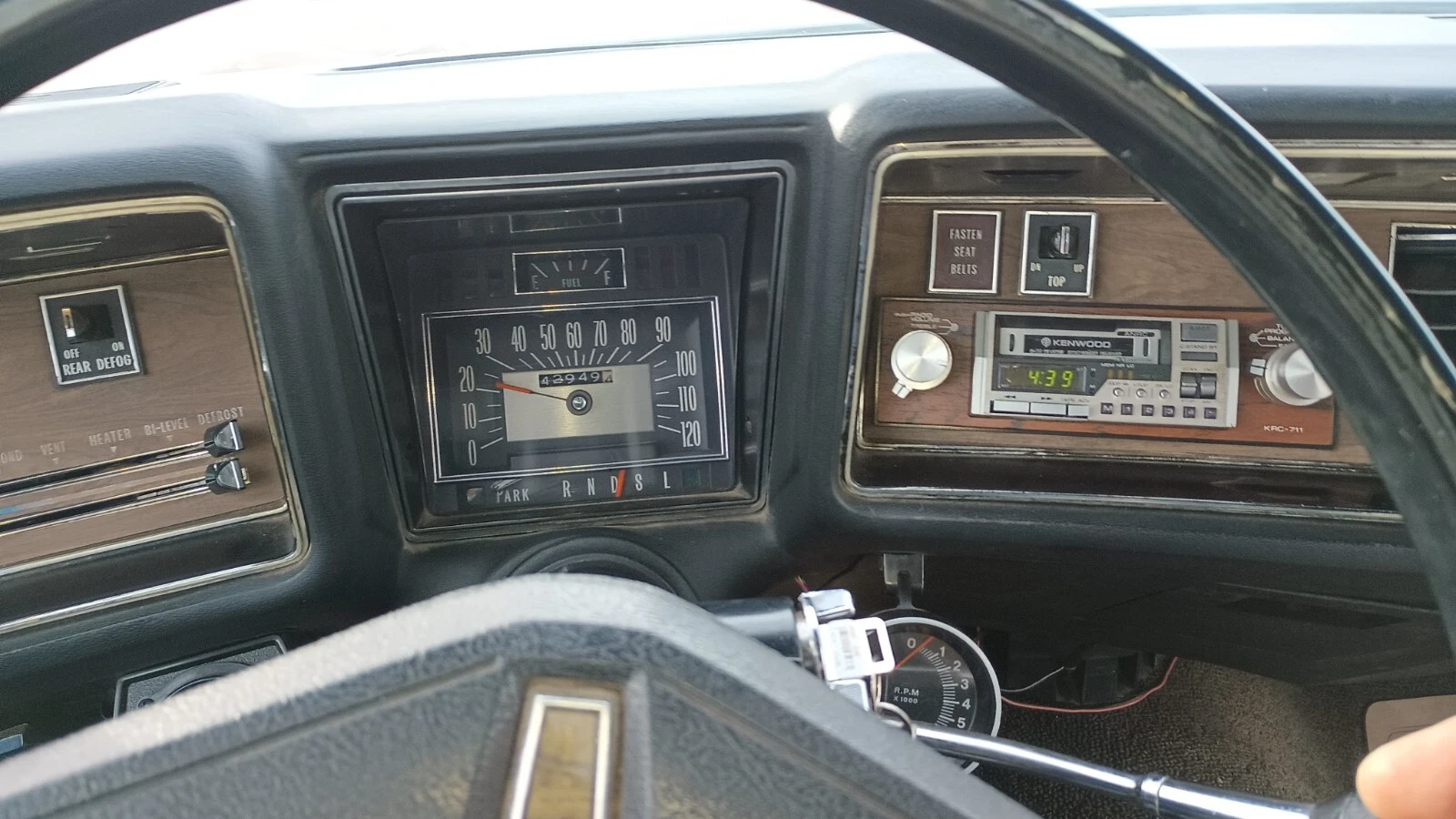 The front seat appears to be in slightly better overall condition than the back, so maybe it’s been reupholstered at some point, though one loose seam is mentioned in the driver’s area. Some aftermarket components include a Kenwood Stereo with a cassette player, plus a couple of gauges have also been added under the dash. This one’s got several good options as well, such as power windows, door locks, and a tilt wheel.