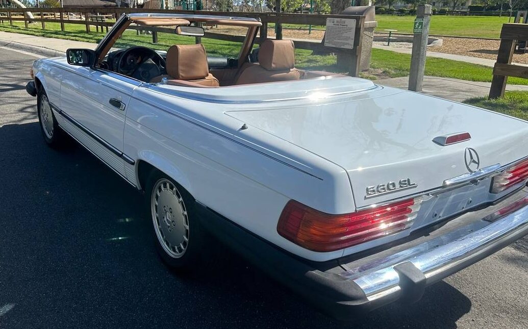 Known in Mercedesese as an “R107”, which covered the years ’71 to ’89 with over 300K assembled (including the hopped-up “SLC” variant), the 560 SL was only offered between ’86 and ’89. It was never intended to be a European market car, instead mostly being distributed in North America. Hemmings estimates that about 50K 560 SLs saw the light of day – that’s a pretty fair-sized number. Considering the condition and price of this member of that 50K club, the listing is a bit light. It does state, ” In great condition and well maintained “. OK, got that, and it looks it. There’s not much that I can say detail-wise as the images present a very sound specimen – finish, chrome, body, both tops, no complaints.