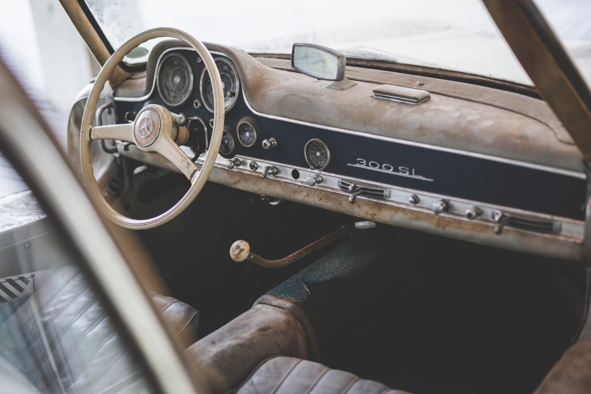 There’s a few good reasons why this 300SL has proven so captivating since its discovery. For one, as an early model, it boasts a number of features that give it “almost-prototype” status, in the words of Classic Driver. The eyebrows over the wheel arches being one of the them, and the elongated shifter extending out from the dash. The fact that the 300SL is so undisturbed despite being used as a daily driver is what’s so captivating about a car like this.