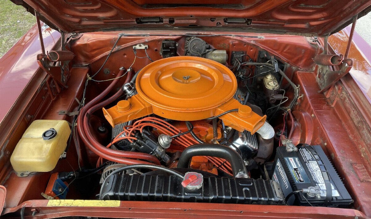 The 440 under the hood has been rebuilt, but it’s not original to the car. The VIN says this Plymouth left the factory with a 383 and automatic transmission, that pairing being installed in 6,888 Road Runner coupes in 1970. We don’t know why the change was made, perhaps the owner at the time wanted more muscle in his/her ride. Regardless, the seller says this auto runs and drives “awesome.” They could have done a better job repainting the air cleaner.