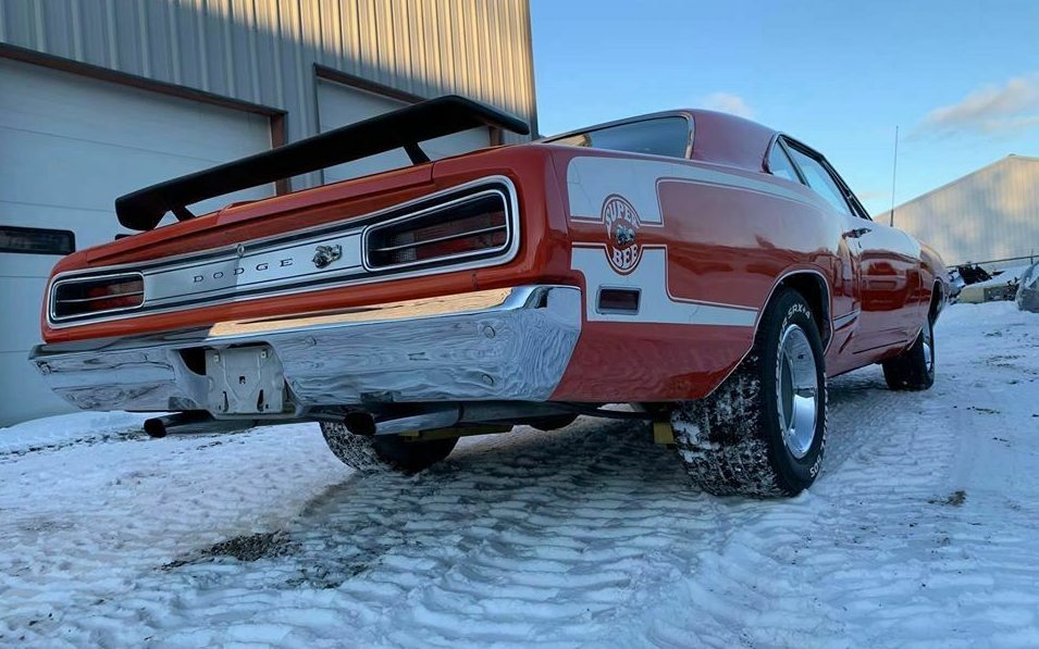 The seller informs us right off that this is a southern car that has been relocated up north. I know how that feels as it happened to me once. Anyway, as you can see from the snow, this Dodge is no longer down south but it does present itself really well so it has been stored appropriately and not used in typical winter weather. It is a two-door sedan or coupe, as opposed to a two-door hardtop and the VIN supplied appears to verify the claim of what this Dodge purports itself to be. The finish looks pretty strong and there are no glaring or obvious issues with the body as this Super Bee underwent restoration many years ago. The seller adds that the underside of this car is solid. The dual loop bumper is one of the most recognizable aspects of this ’70 Dodge. Enthusiasts seem to either love it or hate it. While I prefer the front end on the ’69 version I’m neutral on this ’70; it’s subjective as styling always is. Finally, the seller states that this is a “driver quality” car which I find to be an advantage – what fun is it if you can’t take it out and not worry about it?