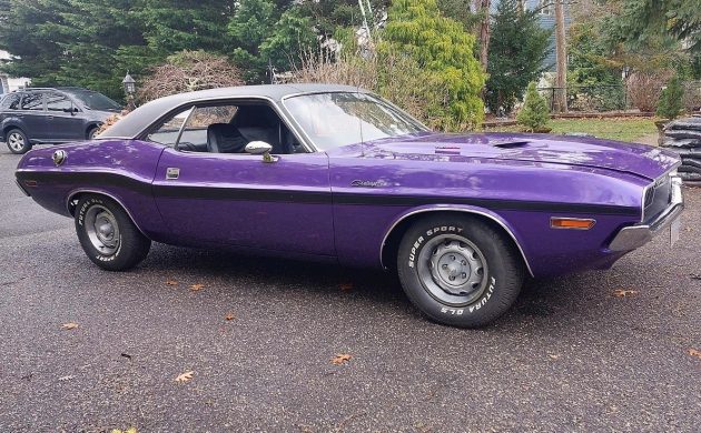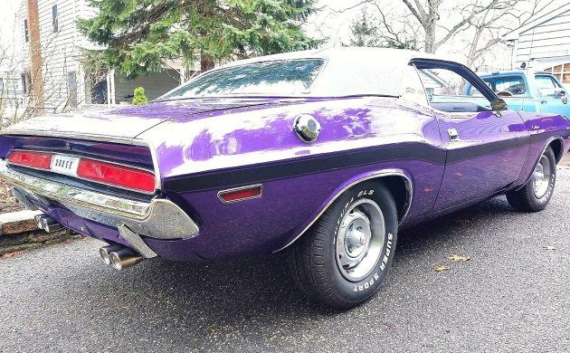 Curvette, thanks a lot for bringing this one to our attention! Looking at the exterior now, it’s hard to imagine that the original color was Bright Blue Metallic. Although that’s also a fine hue for a Dodge muscle car, the owner decided to go with something a bit more attention-getting, and now the outside sports FC7 Plum Crazy paint. The seller says this Challenger recently underwent a restoration that took approximately two years, with the body reportedly sanded down to bare metal before the new purple finish was applied. Thankfully, 90% of the sheet metal is claimed original, so this one sounds like it was still in pretty good shape before the work began.