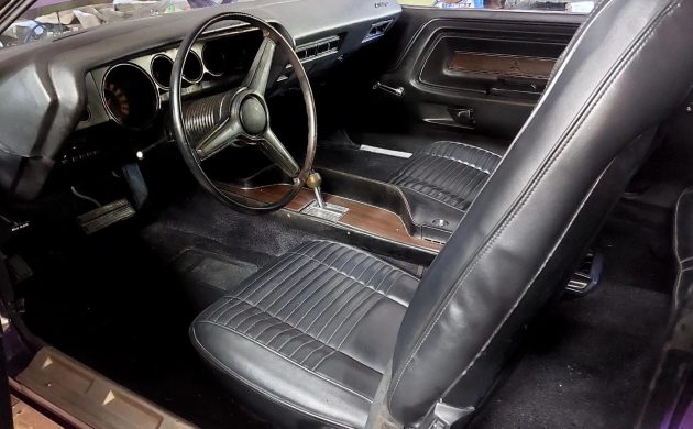 A 318 was originally in the bay, which certainly wasn’t a bad choice for Challenger buyers, as it proved reliable and offered adequate performance for most seeking a daily driver. However, that small block has been swapped for a 440, and the big block is attached to a 727 TorqueFlite automatic, known for its ability to withstand all the abuse these powerful engines can dish out. There’s no word on the engine’s source or date code, and the seller only tells us it’s built, so asking some questions here may be in order before deciding how much you’re willing to spend.