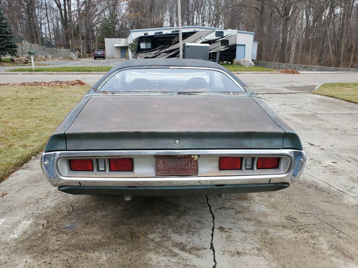 The owner says that the Dodge wears most of its original Light Gunmetal Poly paint, and that rust issues are quite minimal. There are a few small spots at the bottom of each rear quarter panel, but these could easily be addressed with patches. The original Black vinyl top is looking a bit on the shredded side, and there is rust visible under the edges of it. It appears that this is all of the rust that is present, because the owner provides a good selection of photos of the trunk and the vehicle’s underside, and it looks to be solid and clean. Similarly, the lower doors, lower fenders, and the rockers, all look to be solid. From a panel and paint perspective, this is looking like a really straightforward restoration proposition. One nice feature on the vehicle is concealed headlights, which provide the car with a classy and smooth look. It appears that all of the external trim and chrome is present, although there are some pieces that will require restoration.