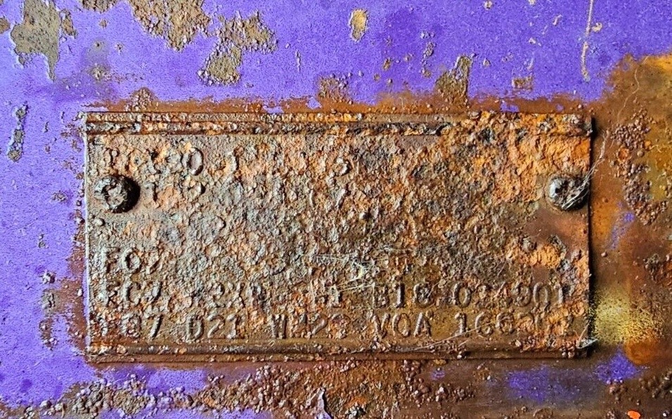 The Super Bee came new with the sort of performance perks dreams are made of, including of course the 440 Six Pack (E87), 4-speed manual (D21), Super Track Pack (A34), Ramcharger (N96), plus more of the right stuff, so I have to agree with Mark that based on the goodies this one’s worth saving. But the condition of just the fender tag itself is a pretty good indicator of the level of corrosion the next owner’s gonna be facing.