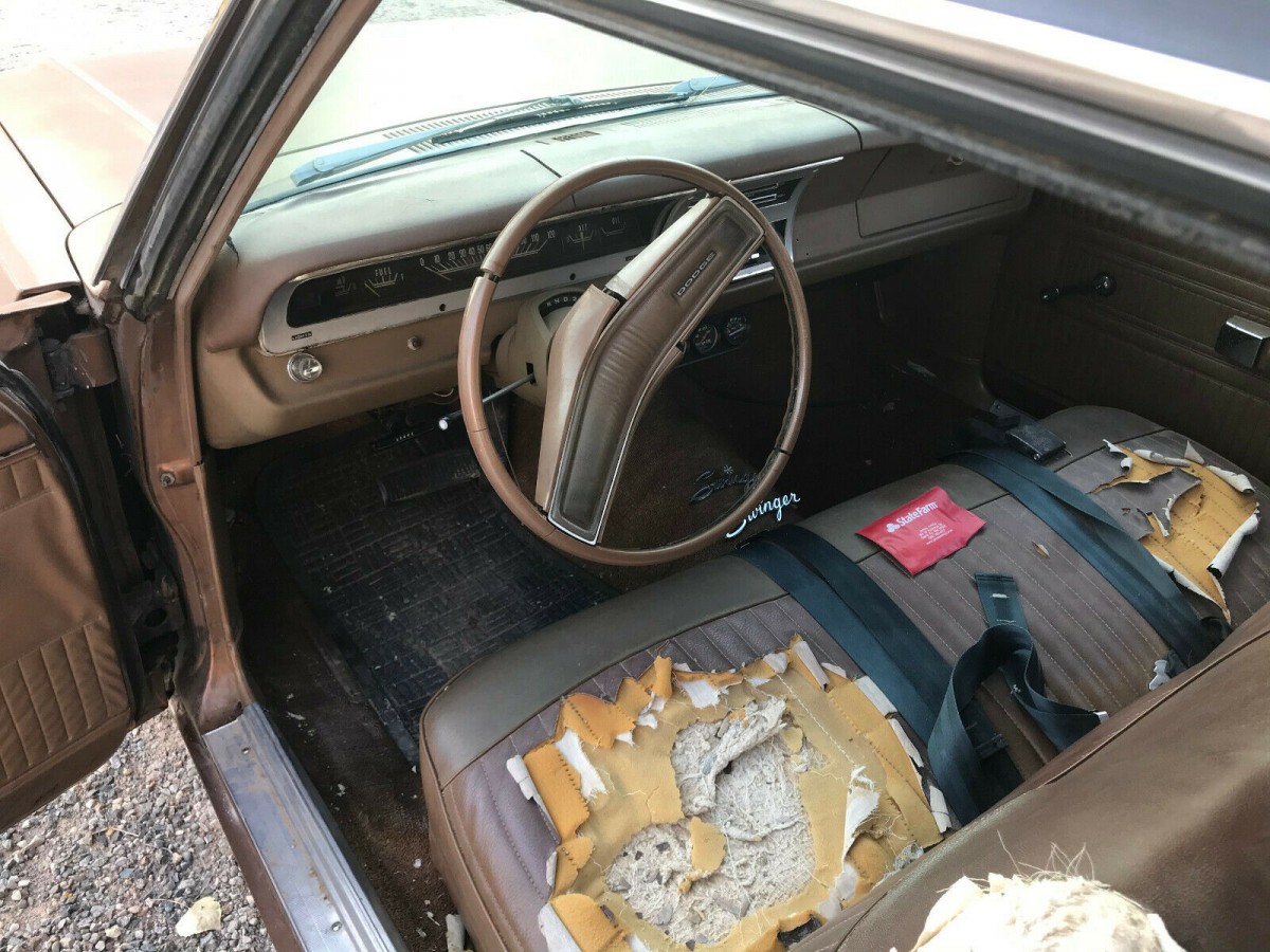 Fix the seats and tear off the vinlyn roof. Looks like rust under it. Look especially around both windows. These were nice cars ,. Even the six was a great little motor. I,d left the six in it. Getting good gas for the 440 is high. Theirs still more work to do to this car.. In order to have a speed demon. $6,000 for this ? Where is $6,000 in this at? I might see $2,000-$2,500.