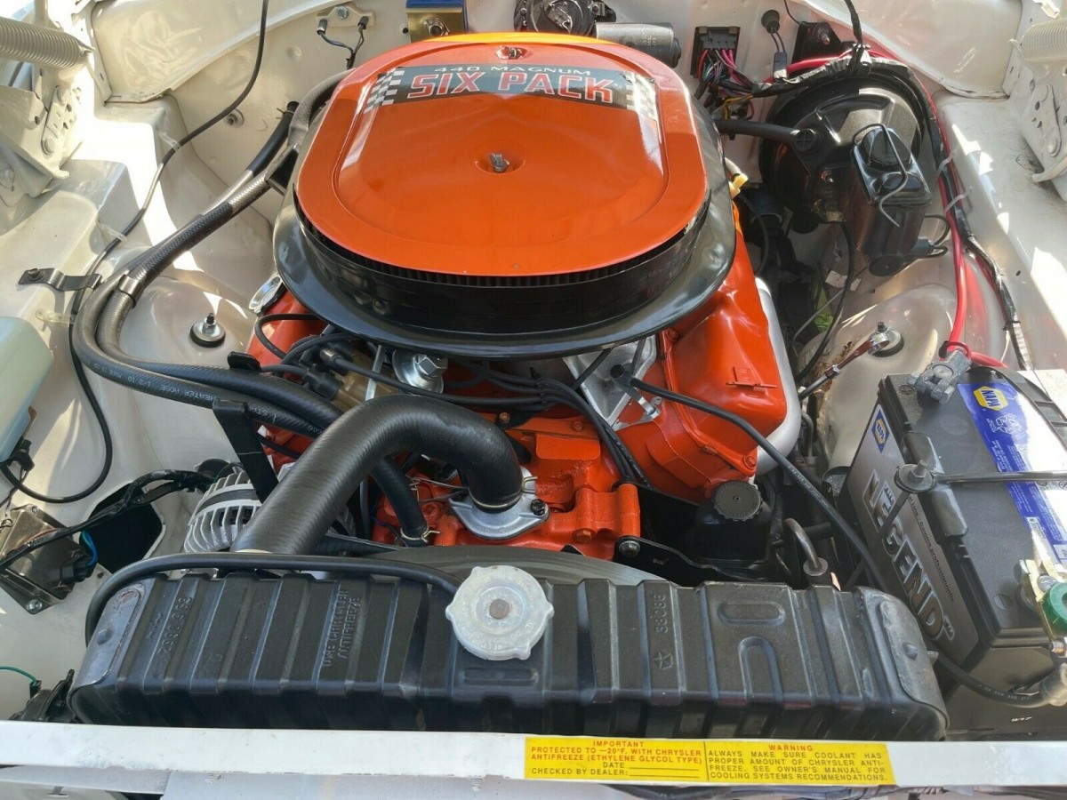 This Charger is a numbers-matching car, at least in terms of the engine block and automatic transmission. The original 4-barrel on this 440 has been replaced by a triple 2-barrel setup, which was available on the Charger that year. The odometer is said to read 105,000, and those look like well-cared-for miles. The condition of the body, paint, and interior are attributable in part to the Dodge having lived in a dry garage when not in use.