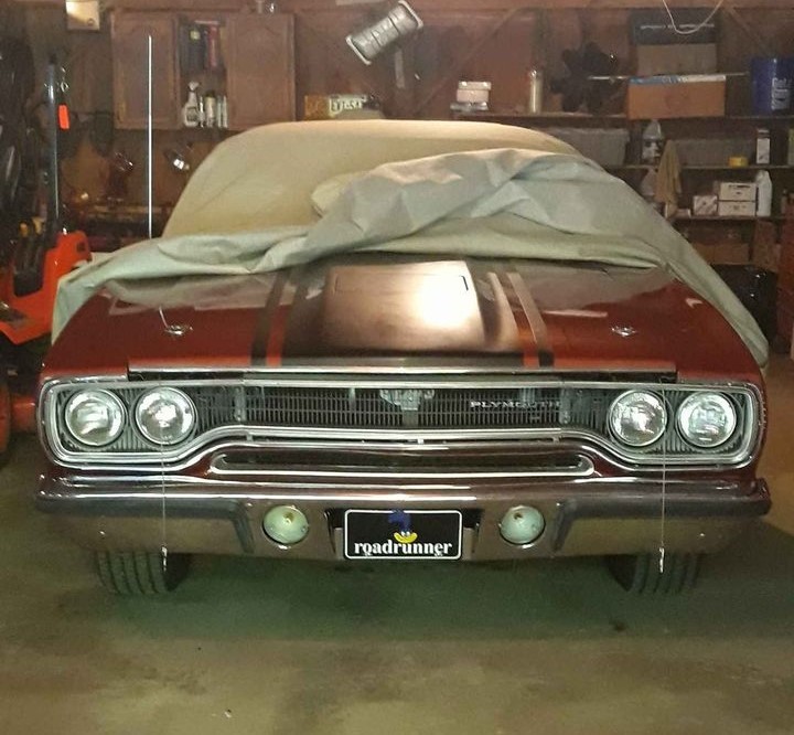 someone dumped a stolen 70RR in our alley backin the day. only thing left were the bumper lights. being infatuated with the car; i took them. why? years later walking through an alley blocks away heading to school, the wind had blown the fence down. there were all the doors.hood.trunk! met the thief later when i had my Super B. He had a 70 GTX 440 matic same color as this one. a 70 RR 440 pistol grip. both had air grabbers.young Polish guy. whoda’ thought? went to jail tagging a Pantera later. whoda’ thought…a Ford powered!