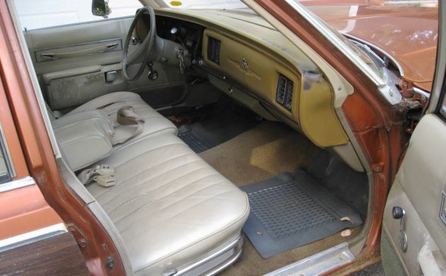 You can see that there’s a lot of work to do if a person wanted to bring this Town & Country back to like-new condition again. A lot of work, and a lot of money. The sixth-generation Town & Country was made from 1973 for the 1974 model year until the end of 1977. This was it, Chrysler’s last big wagon. The follow-up eight-gen T&C was based on the smaller M-body LeBaron and was a very nice car. I actually prefer those cars, but I’m weird. The version after that was based on the K-car and was front-wheel drive, so a totally different animal, but still a nice car. I wonder if a 440 V8 would fit in a K-car Town & Country?…