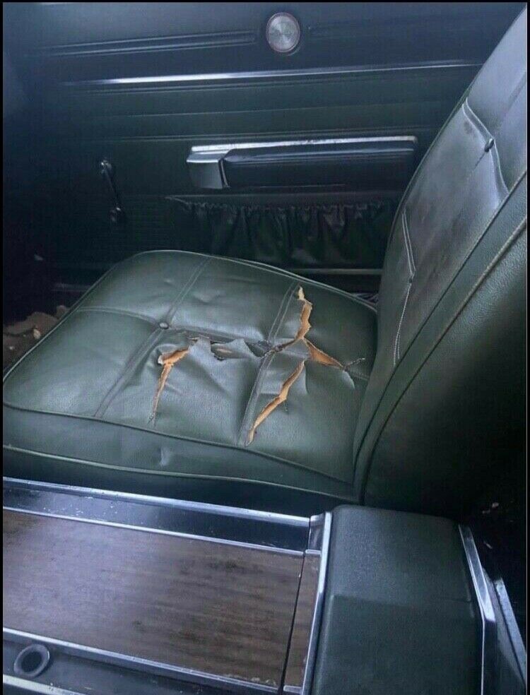 None of the photos provided show the entire automobile and the seller tends to focus on the vinyl top. It’s clearly starting to peel in several places, but we’re told there is no rust underneath. However, the trunk pan and quarter panels have not been as fortunate as well as the dashboard below the VIN. The interior doesn’t look bad from what we’re shown, but the buckets seats will need recovering. This car offers a lot of potential but you’ll end up with a sizeable investment when done.