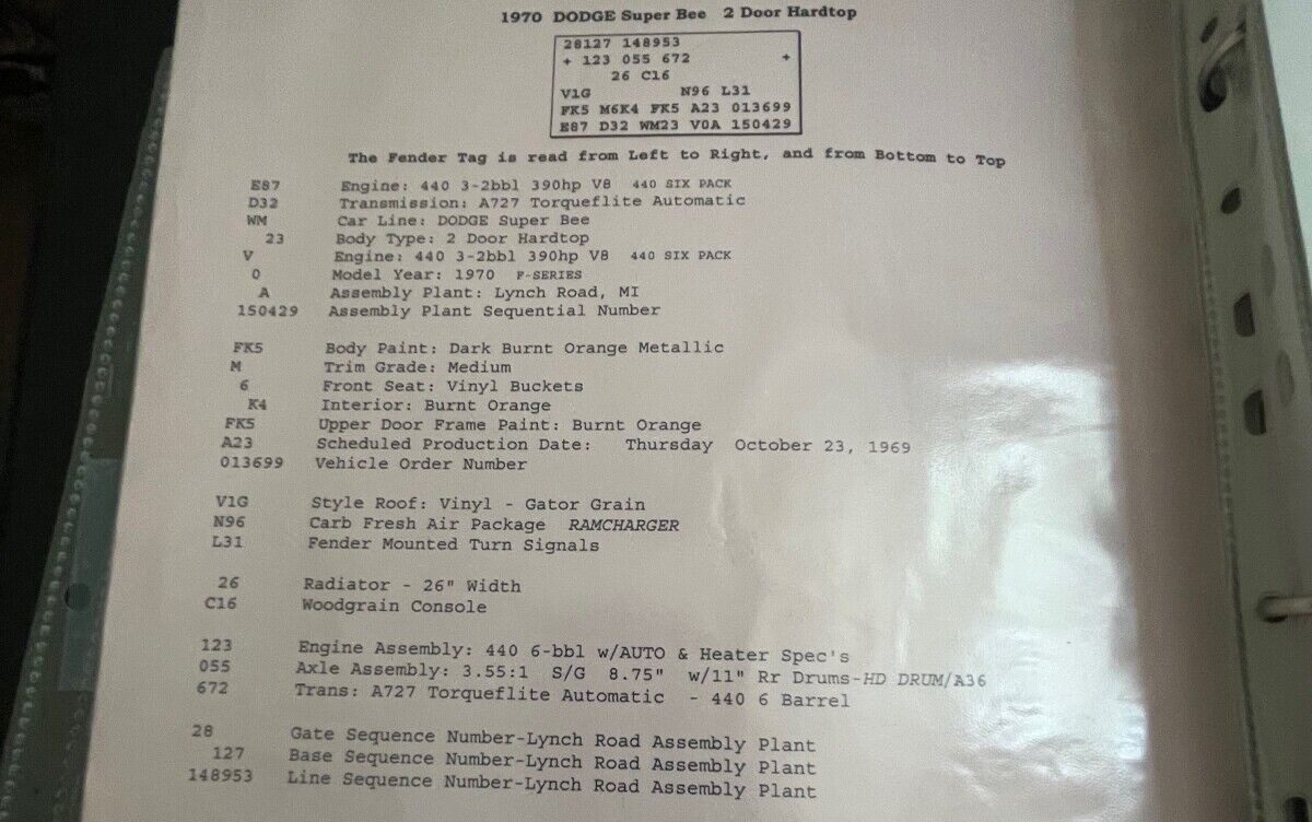 Unfortunately, the V-Code 390 gross HP, 440 CI V8 engine is not original to this car. It’s a 1968 vintage block and it has been stroked out to 496 CI. A TorqueFlite three-speed automatic transmission sits between the big RB engine and the eight and three-quarter rear differential which is spinning 3.55:1 gears. No mention is made as to how this Dodge scoots but I have to believe it’s fast!