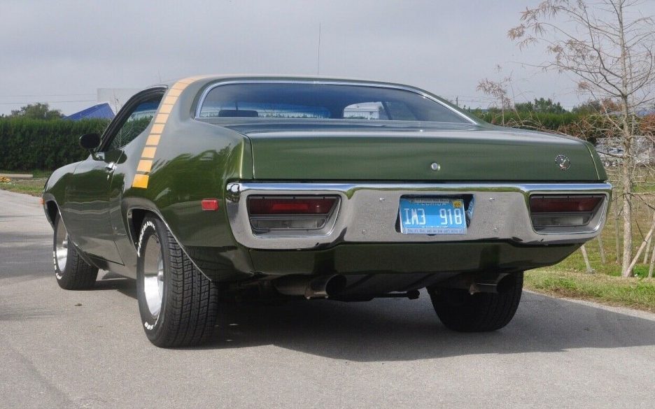 Ah yes, Sherwood Green Metallic, one of my favorite ChryCo colors and this Road Runner wears its 2015 repaint beautifully. I’ll admit it, I’m not a fan of stripes and graphics but this Road Runner displays its reflective tape stripe well, it’s not that obvious. Other than the missing grille, the exterior shows perfectly. The seller adds, “This Road Runner has all the original body panels and not one spot of rust ever“. The front end appears slightly lowered, with the rear end slightly raised ever so slightly, ostensibly to accommodate the oversized tires. Whatever the case, this Plymouth possesses the perfect ’70s rake.