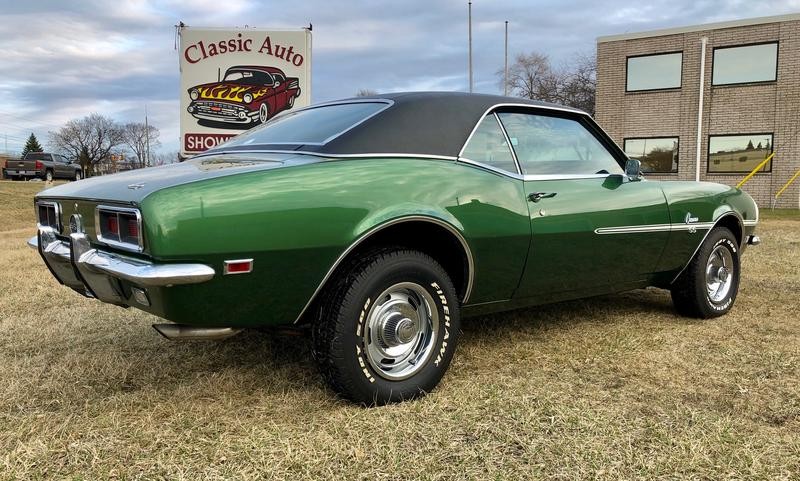 Bought my 68 Camaro in ’68 same color(Dealer called it British Racing Green) sight unseen 327. automatic, tac in the clock, gauges on the console. no vinyl top, floor mats.. $2,840. Loved seeing this one. Sure miss mine