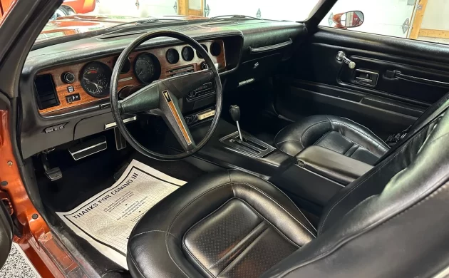 The interior looks as clean as the exterior and engine compartment, with black vinyl high-back bucket seats and full instrumentation. It also has an 8-track player because it’s a ’70s Firebird, making it practically a prerequisite.